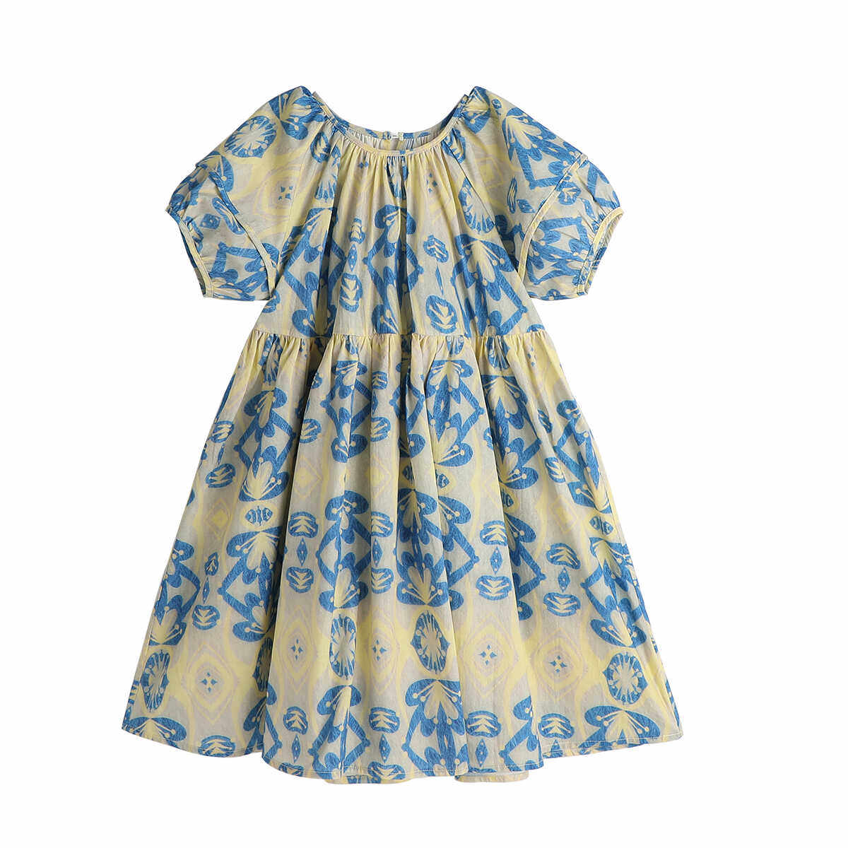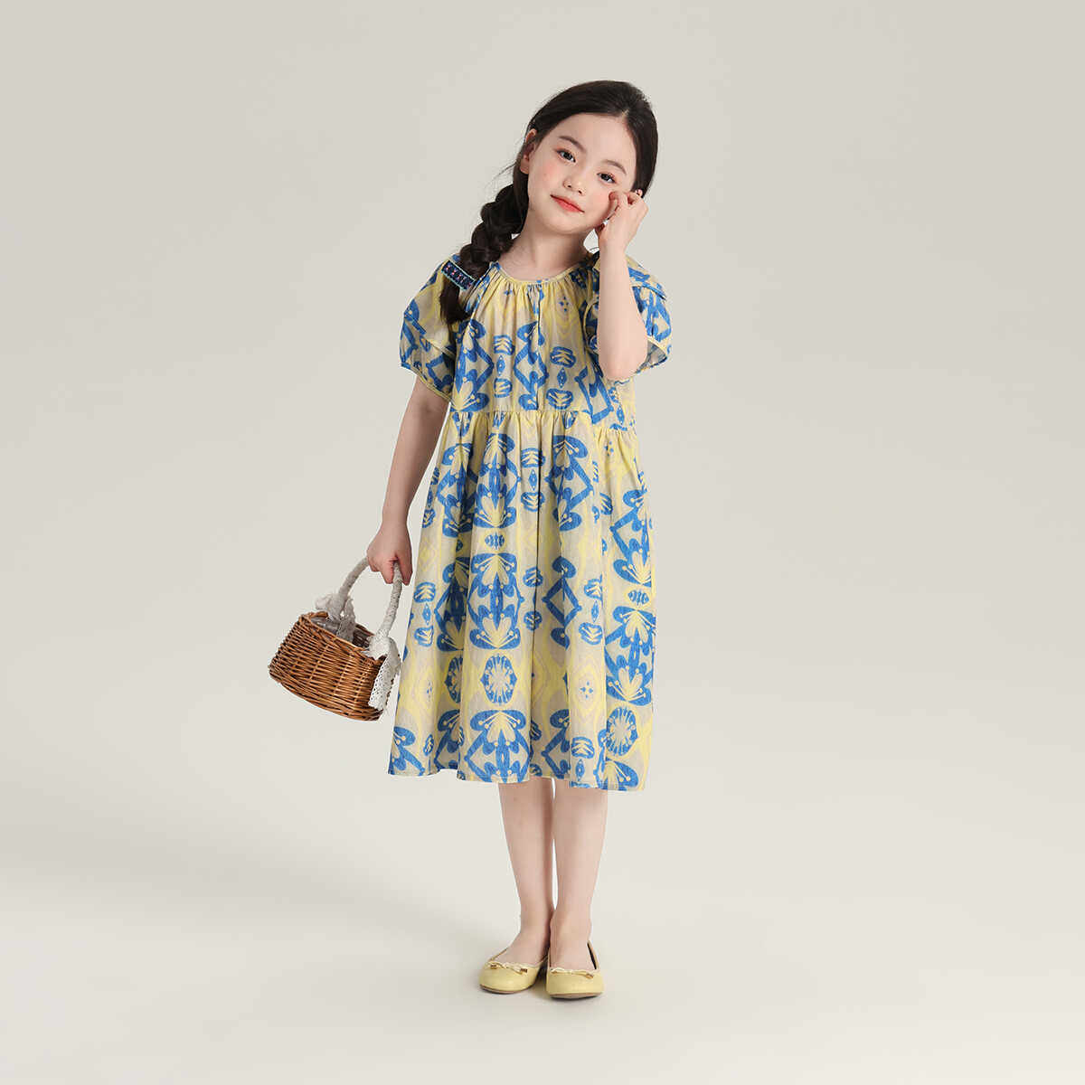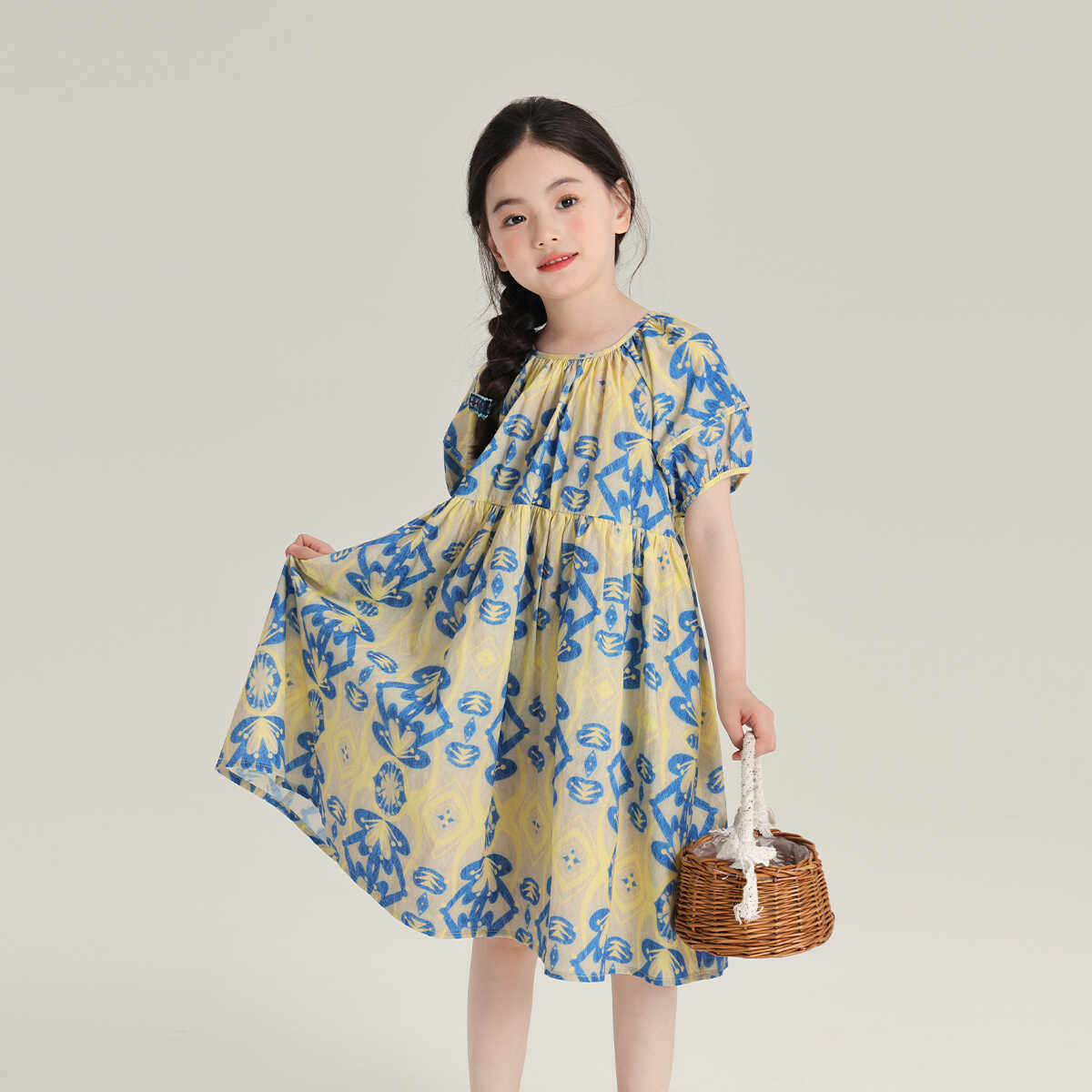 女童连衣裙洋气裙子夏季纯棉儿童装泡泡袖女孩抽象公主裙长裙薄款