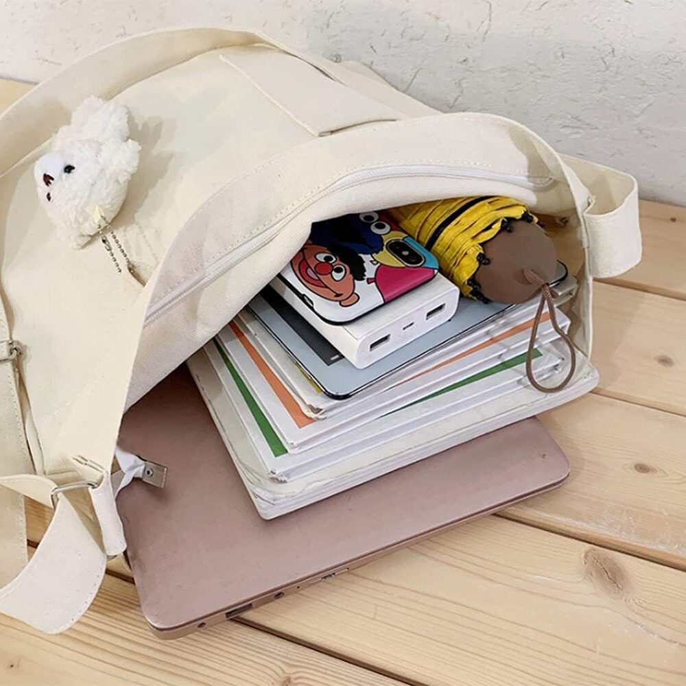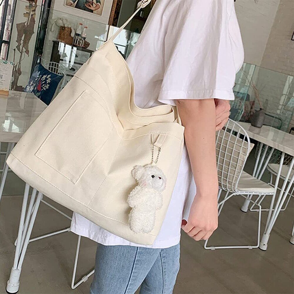 日系纯色简约可爱单肩手提帆布包大容量斜挎包校园女生托特包可订