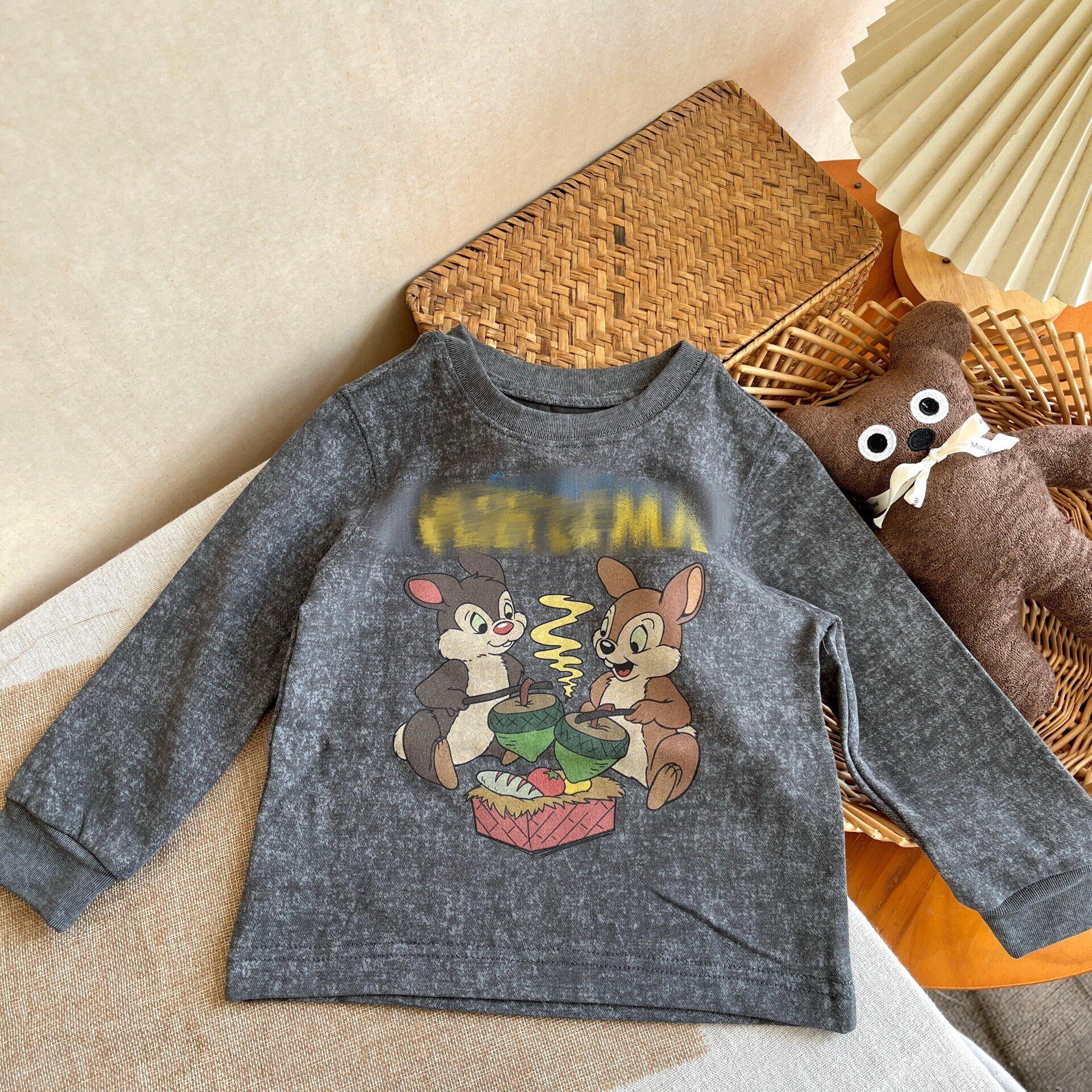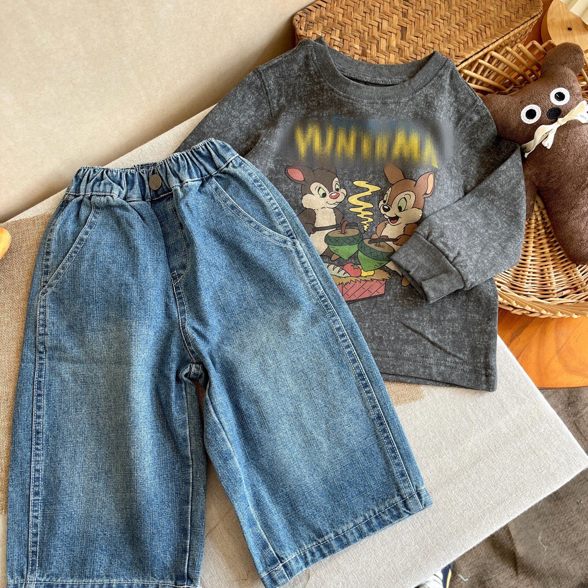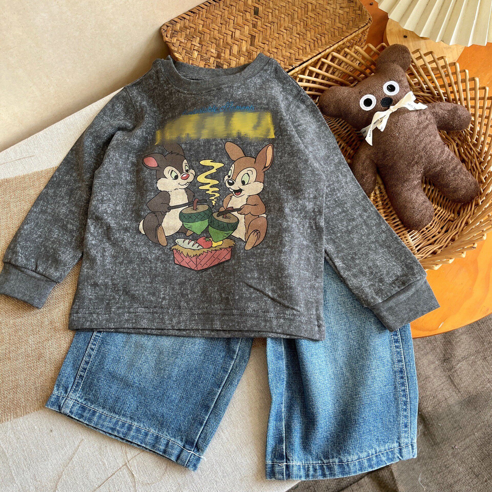 2026春季新款女童小众纯棉卡通长袖洋气T恤儿童卫衣牛仔裤套装潮