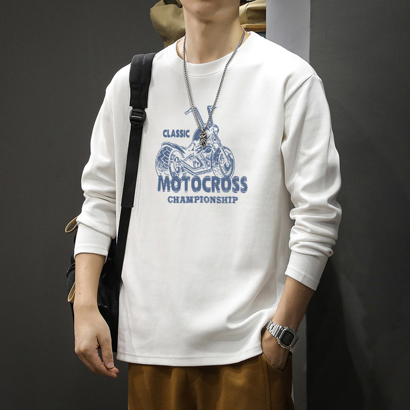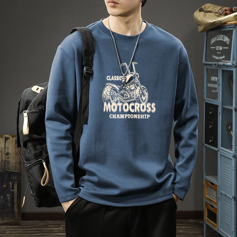 纯棉长袖男t恤春秋季2026新款美式上衣青少年休闲圆领打底衫男款