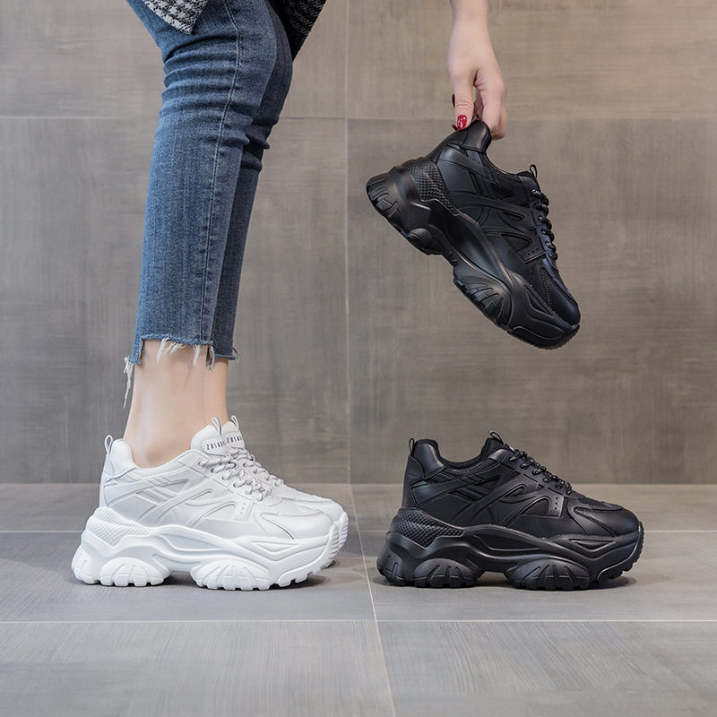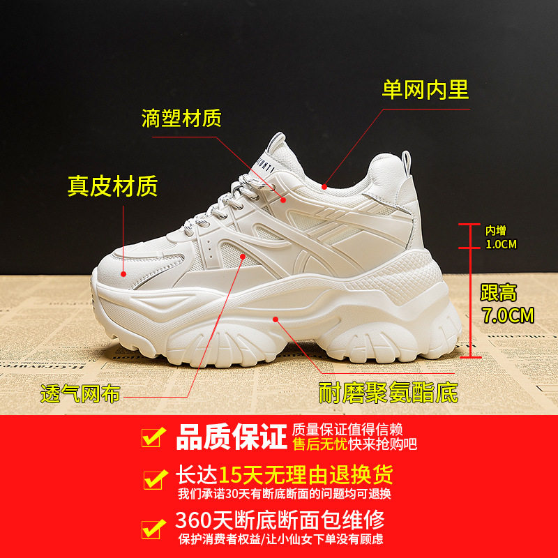 8CM真皮内增高小白鞋女2026春夏新款百搭休闲轻便厚底松糕老爹鞋