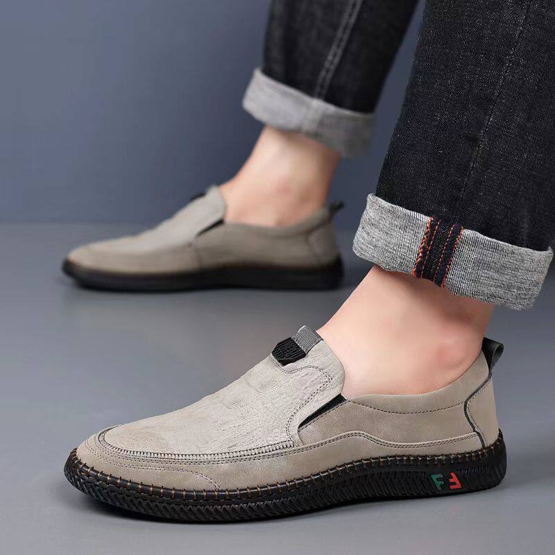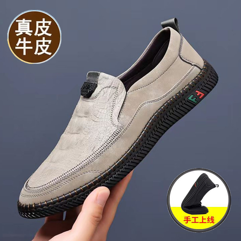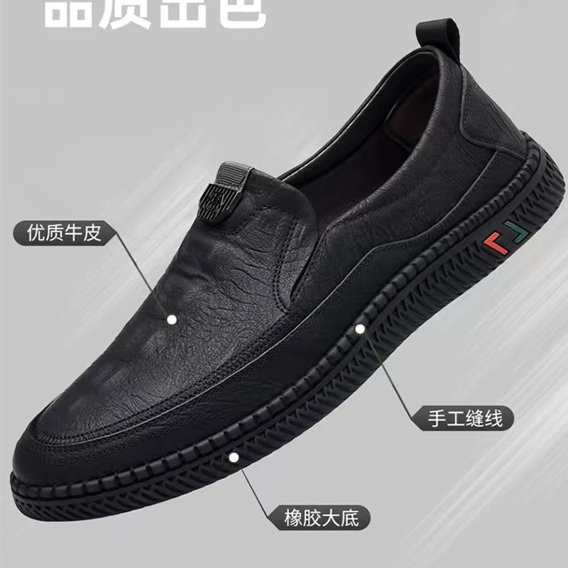 真皮男2026春秋新款透气商务休闲皮鞋软底一脚蹬豆豆鞋爸爸乐福鞋