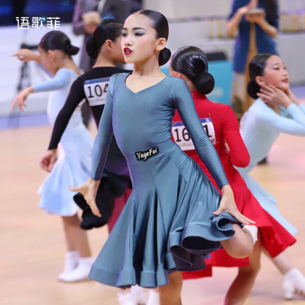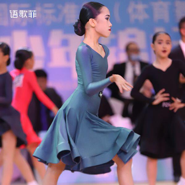 语歌菲拉丁舞比赛服女童新款分体黑池表演国标专业规定服高弹氨纶