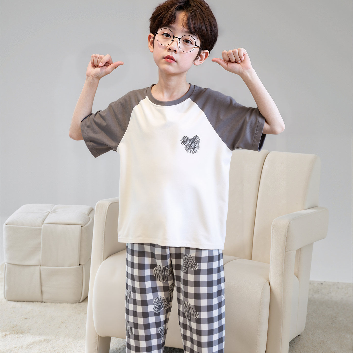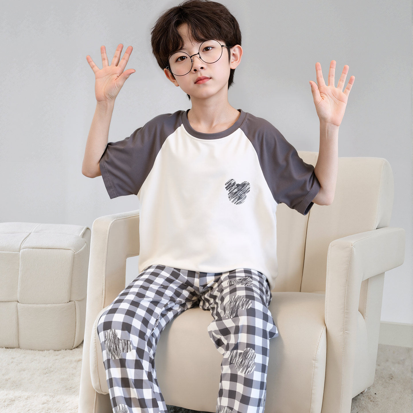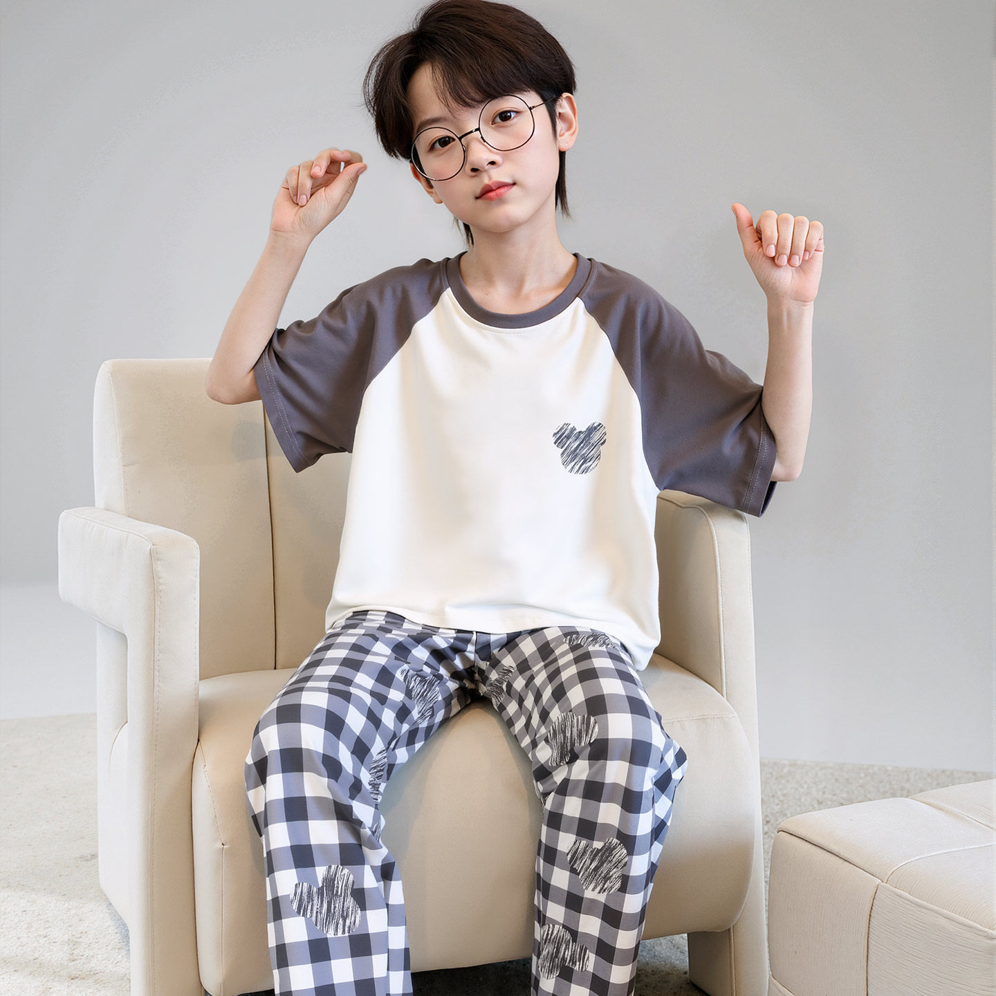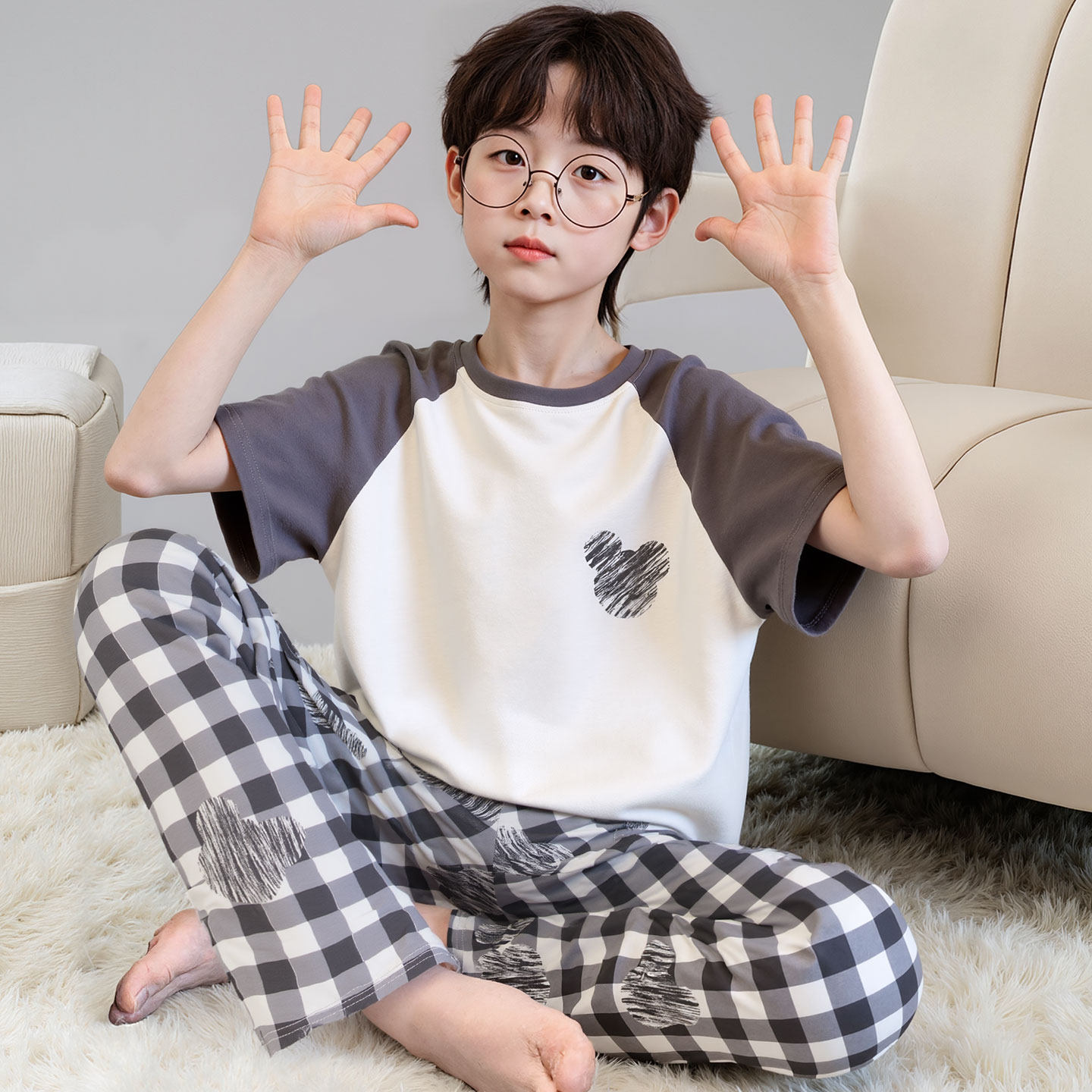 男童睡衣男孩夏季新款纯棉大童短袖长裤男生青少年初中生半袖2026