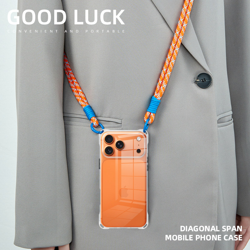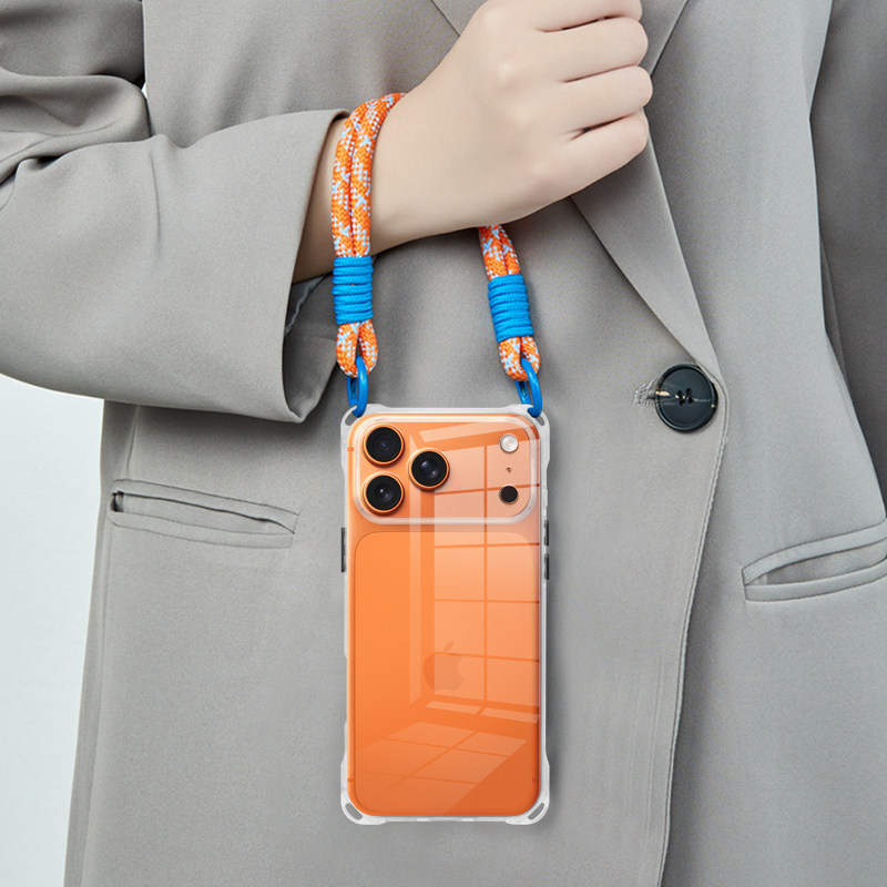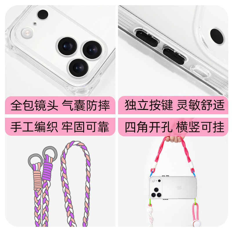 适用于苹果17promax手机壳创意新款小众透明iphone16plus斜挎手提挂绳背带腕带14pro简约保护壳15promax全包