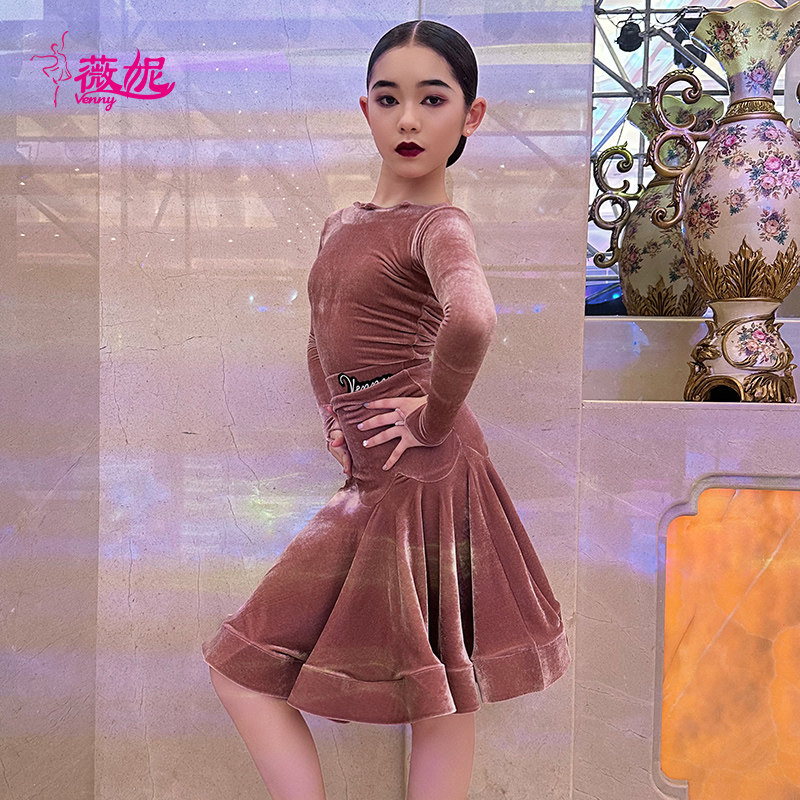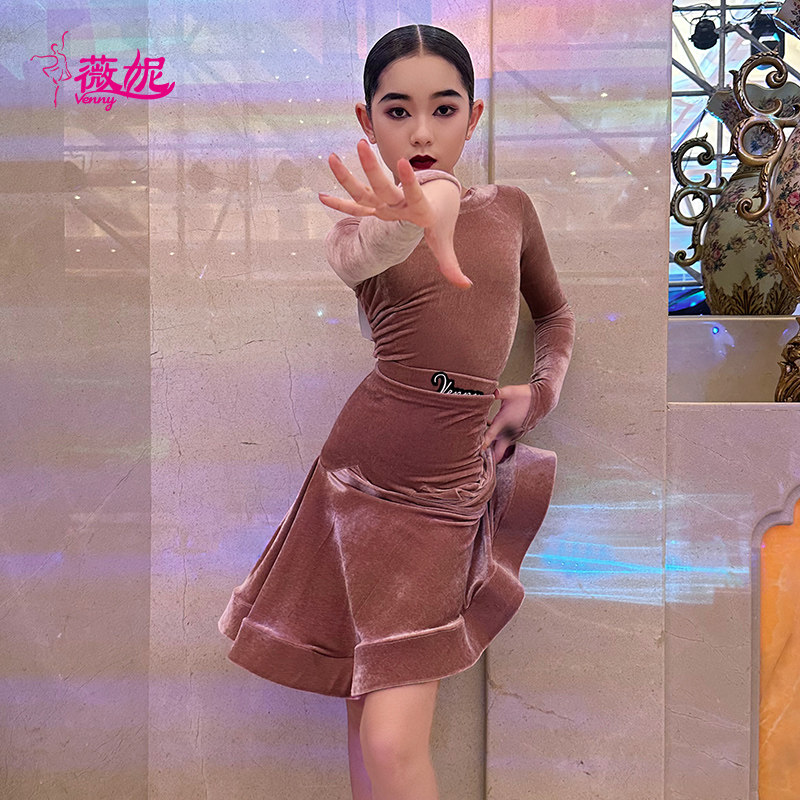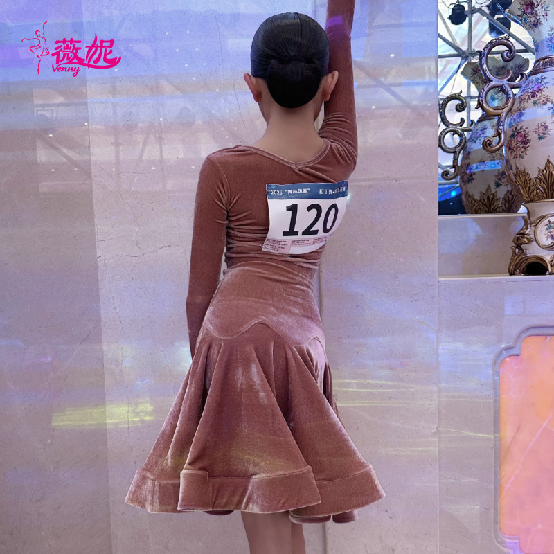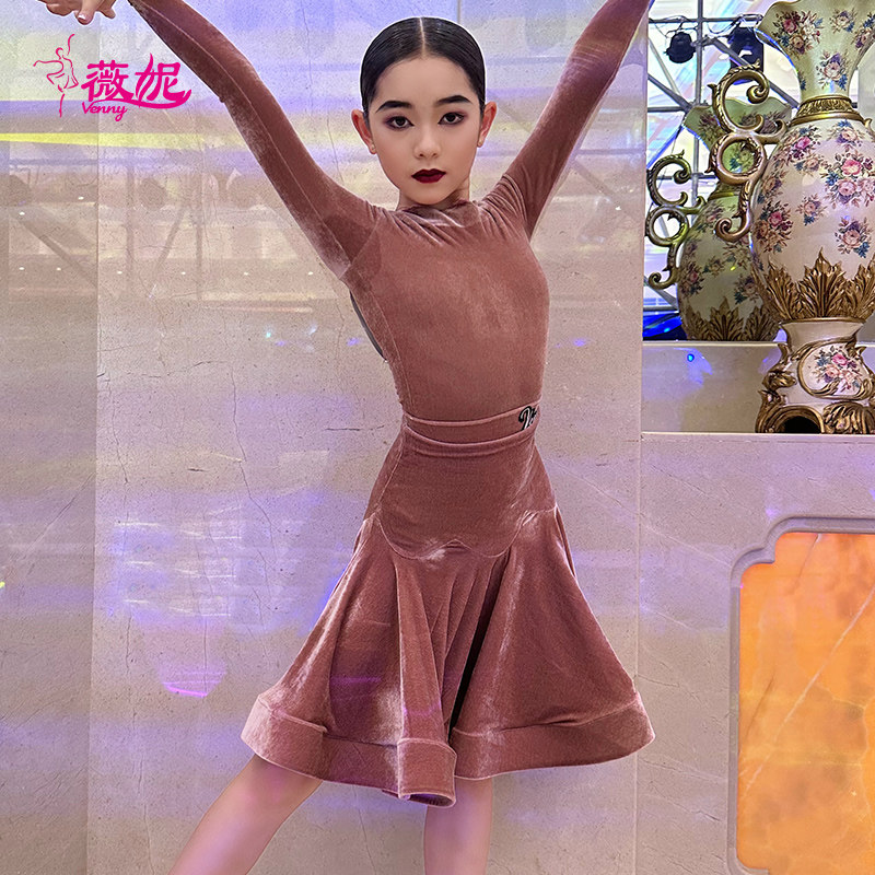 薇妮拉丁舞比赛服丝绒分体专业艺考级舞裙新款女童演出赛事规定服
