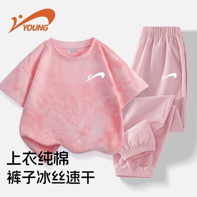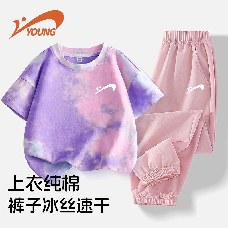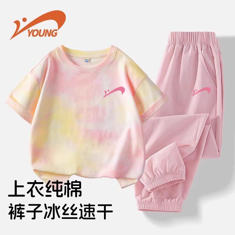 贵人鸟女童夏季套装儿童纯棉短袖2026新款童装女孩衣服大童夏装
