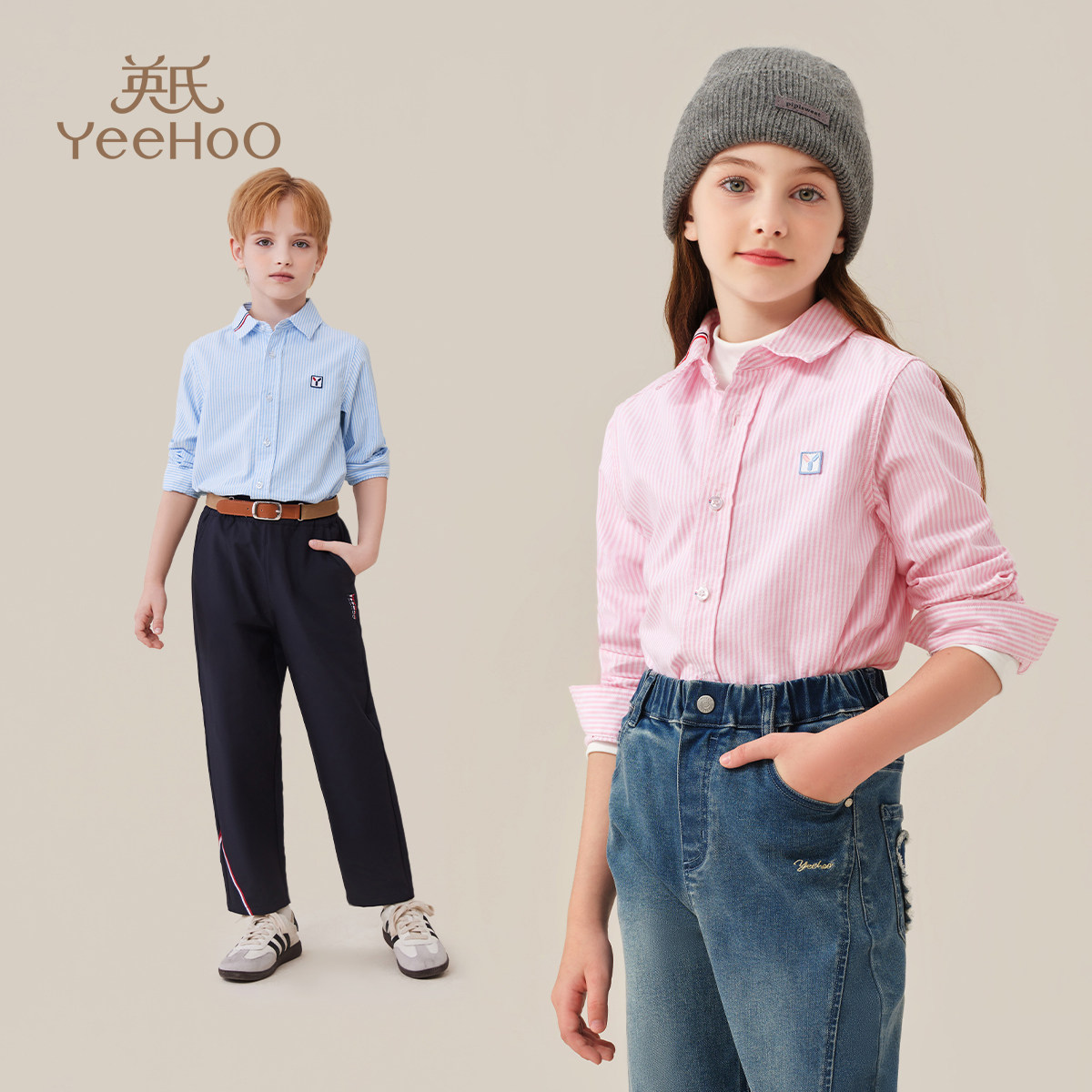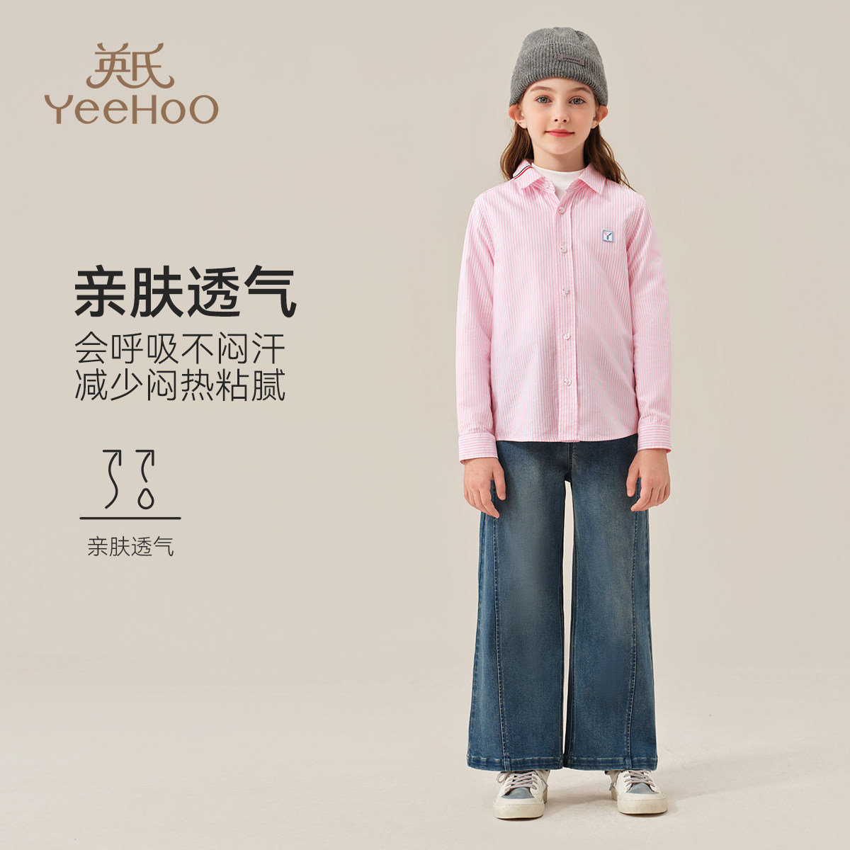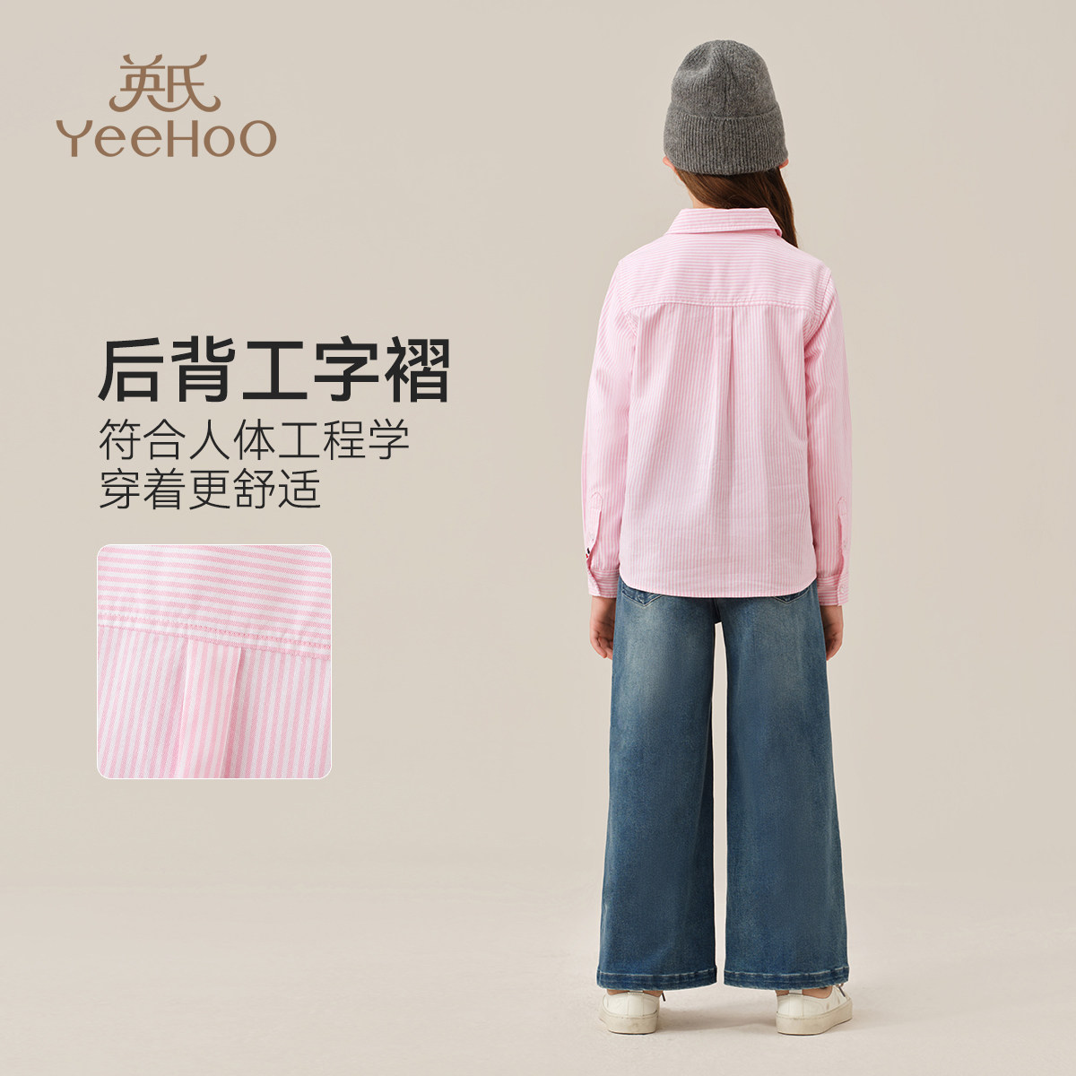 英氏女童衬衫长袖2026春装新款儿童纯棉衬衣洋气时髦学院上衣潮