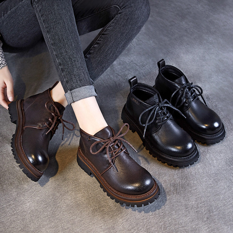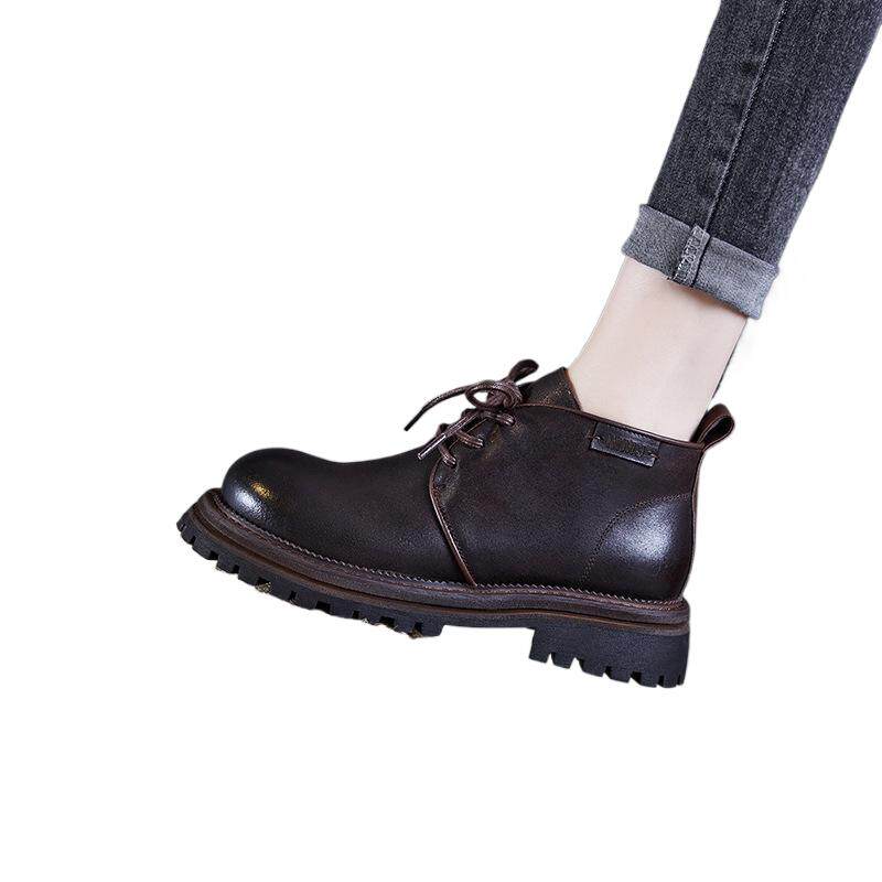 爆款真皮厚底大头皮鞋女英伦风高端头层牛皮深口单鞋复古马丁短靴