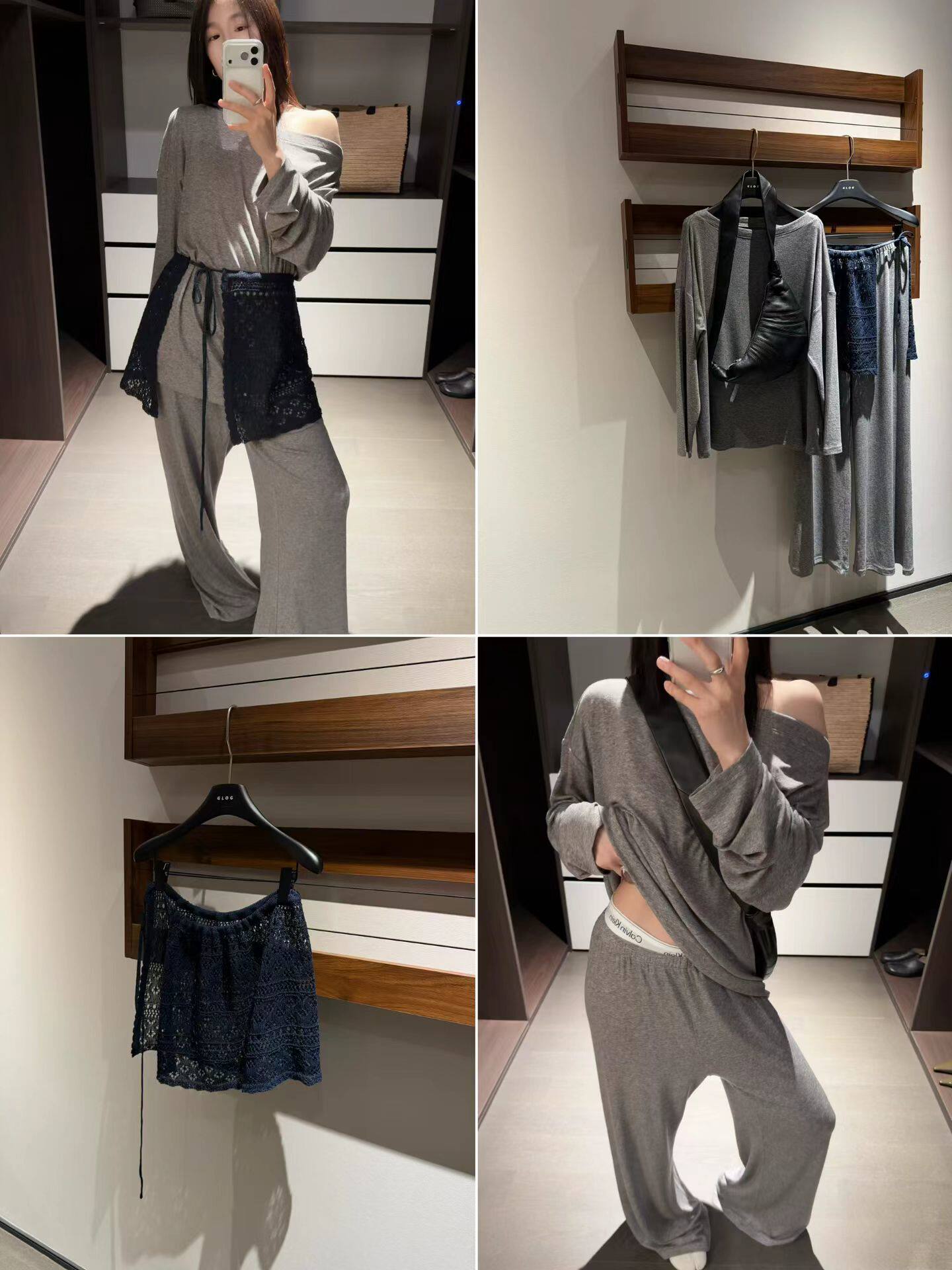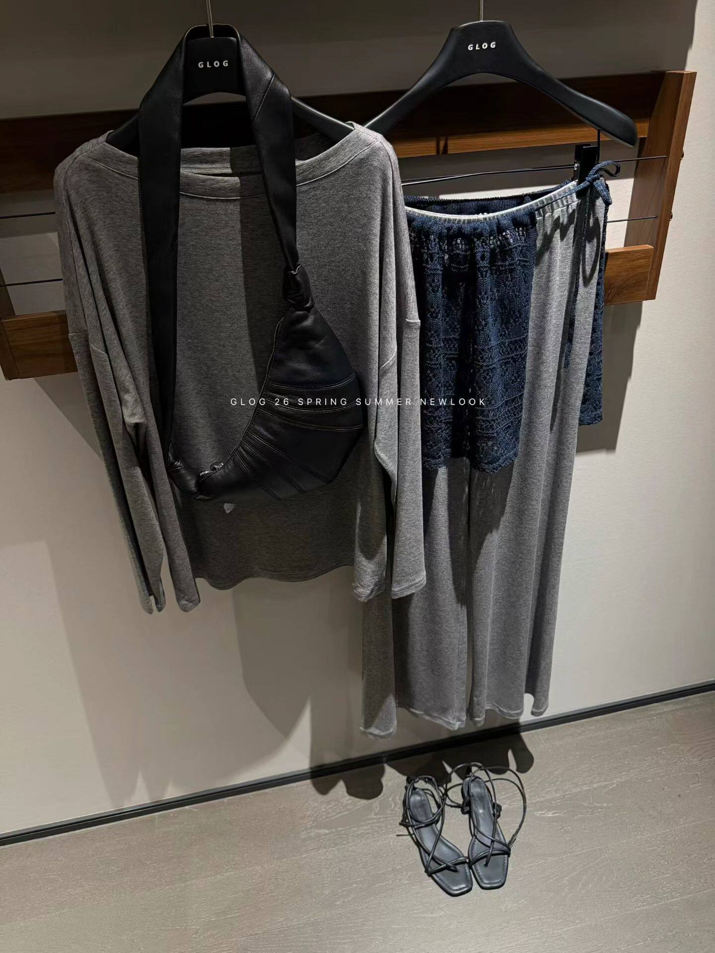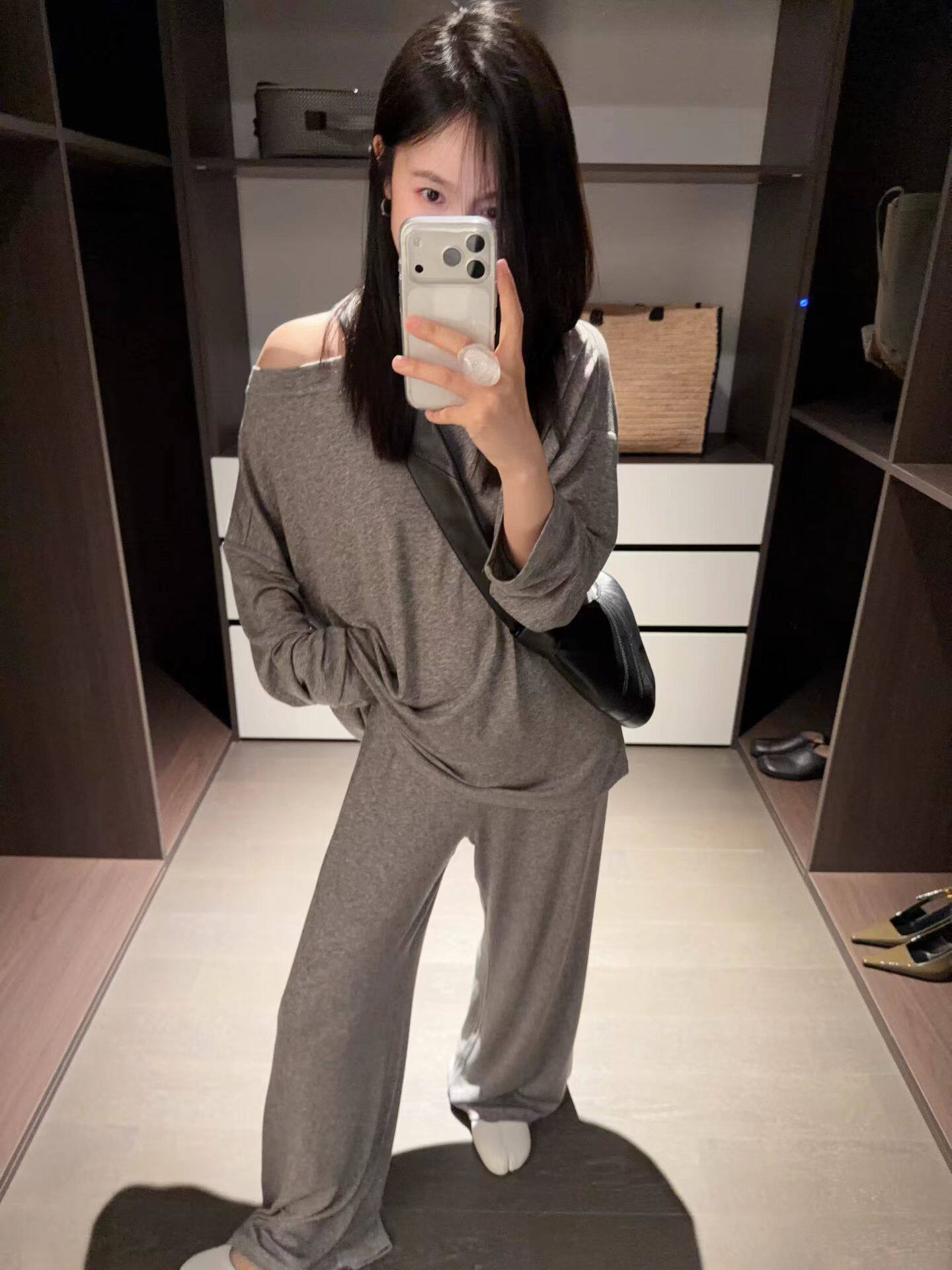 GLOG2026春夏新款韩版百搭宽松斜肩T恤高腰设计裤子套装女