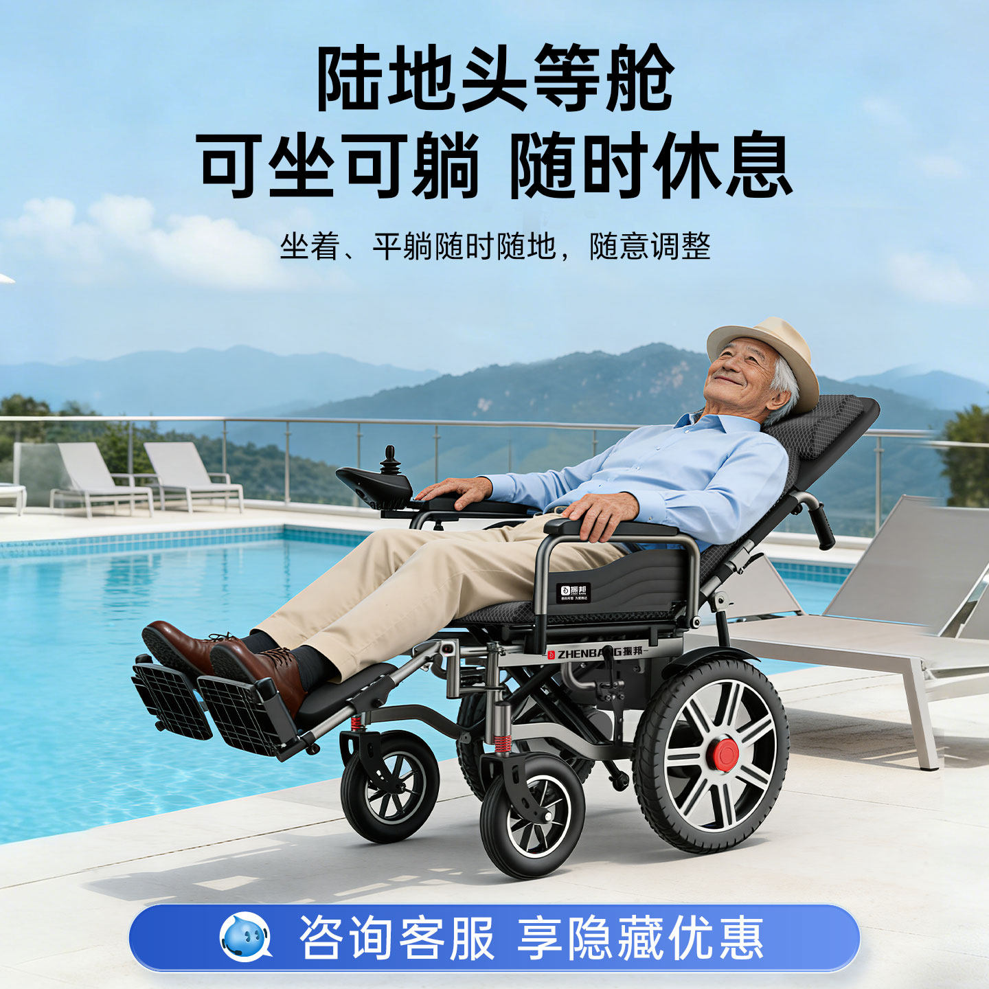振邦电动轮椅折叠轻便智能全自动残疾人老人专用可躺农村代步车