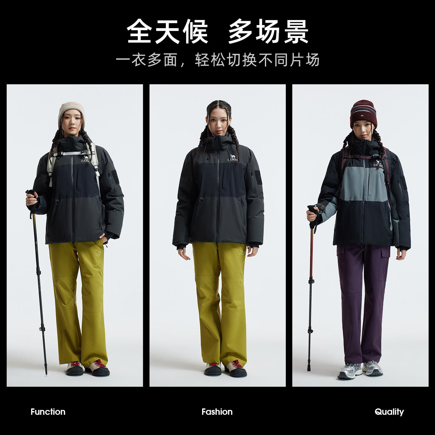 【鹅绒】骆驼户外羽绒服冬季女款男款防泼水防风加厚羽绒冲锋衣