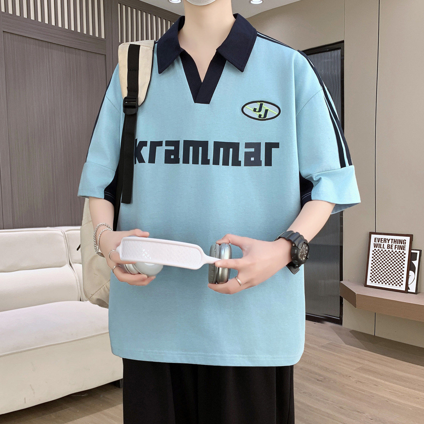 青少年短袖t恤男孩初中高中学生宽松帅气半袖大童夏装polo衫上衣