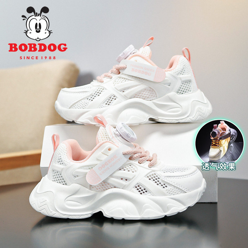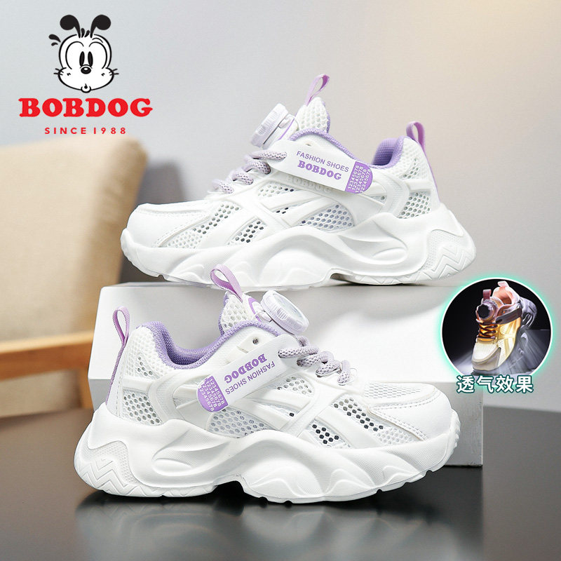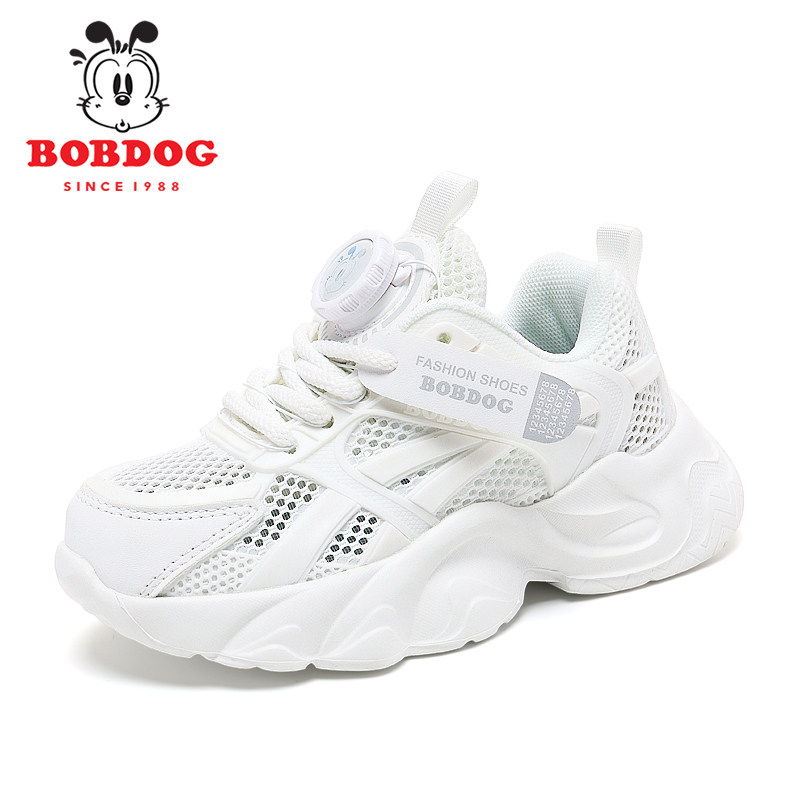 巴布豆童鞋儿童小白鞋2025夏季新款透气男童单网鞋女童白色运动鞋