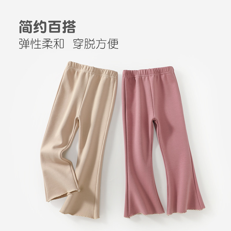 女童秋冬季加绒一体绒薄绒抗寒保暖微喇叭裤儿童小女孩外穿长裤子