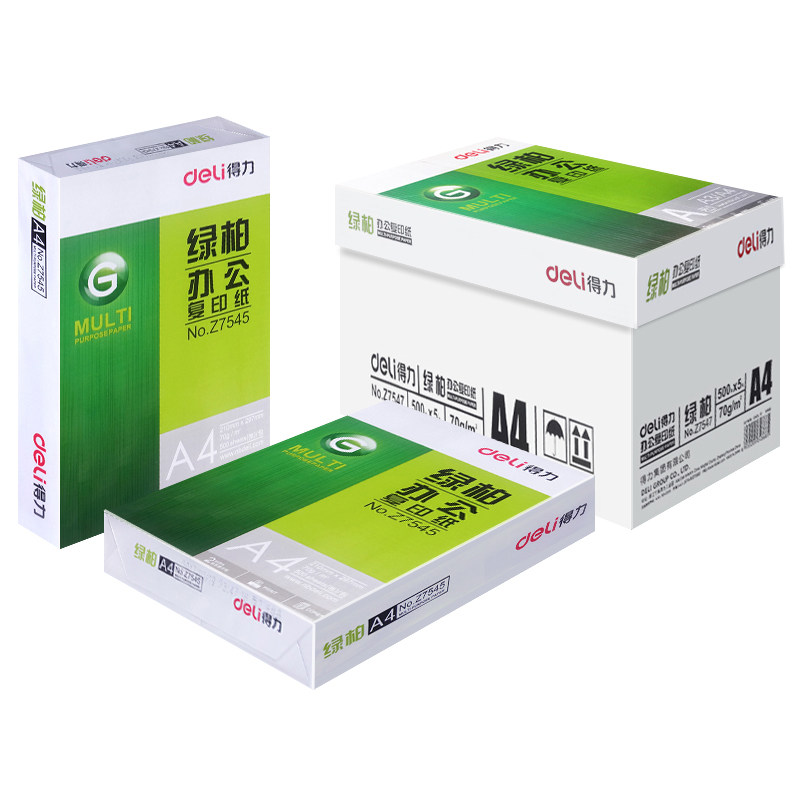 得力a4打印铂印复印纸70g整箱A3纸办公白纸绿柏 木尚单包500张