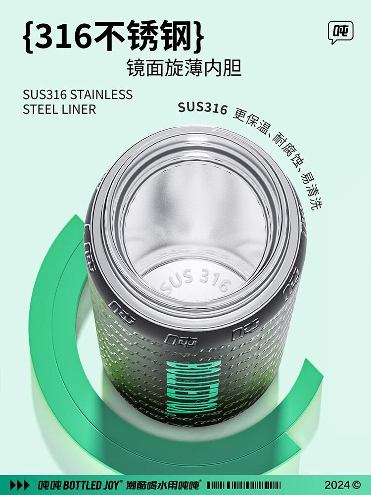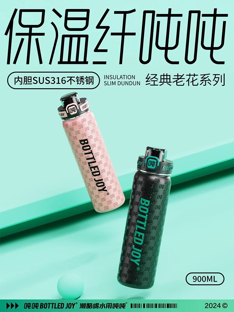 纤吨吨保温杯大容量高颜值老花复古风耐高温学生书包上班车载专用