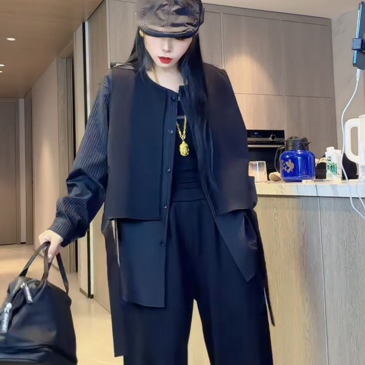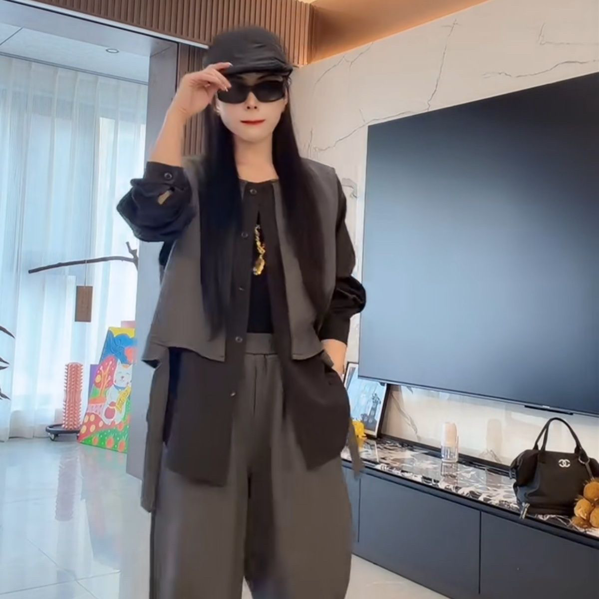 2026春秋女款套装超酷个性假两件外套裤子气质两件套宽松休闲气质