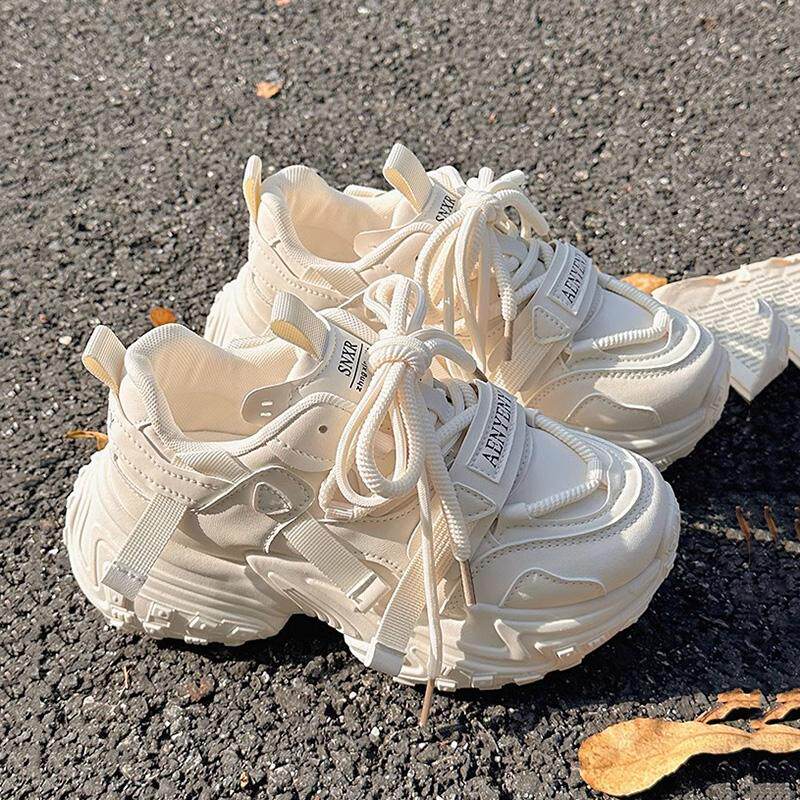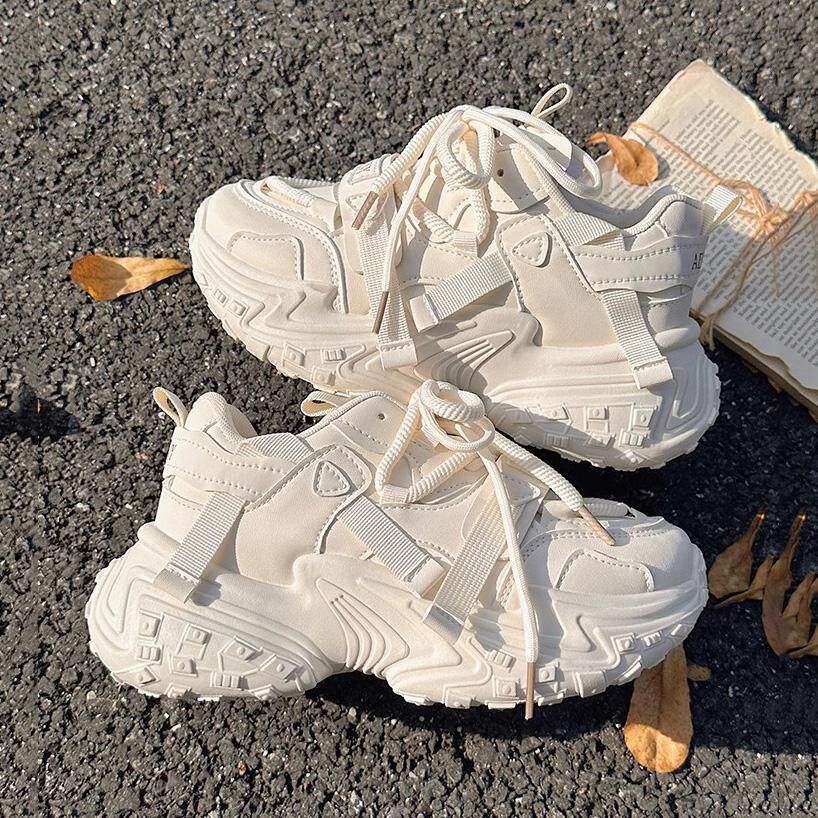蓓尔老爹鞋女2024新款秋冬款小白鞋女厚底配阔腿裤的鞋子运动鞋