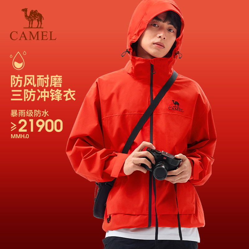 骆驼冲锋衣男女款2026春季新款户外防风防水硬壳新年红色情侣外套
