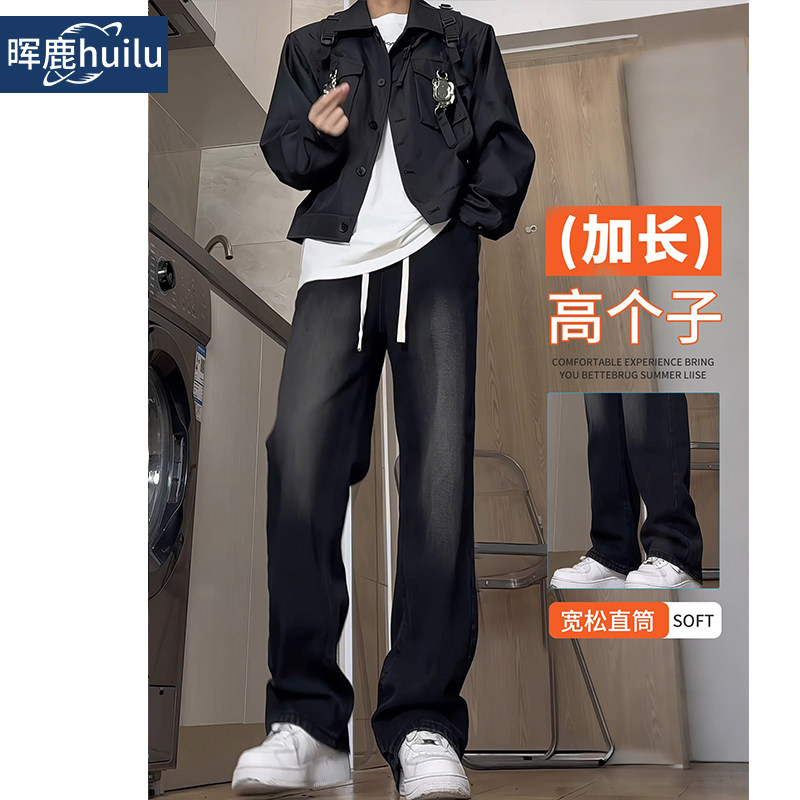 190加长版裤子男高个子秋冬青少年牛仔裤男款加绒男生直筒裤120cm