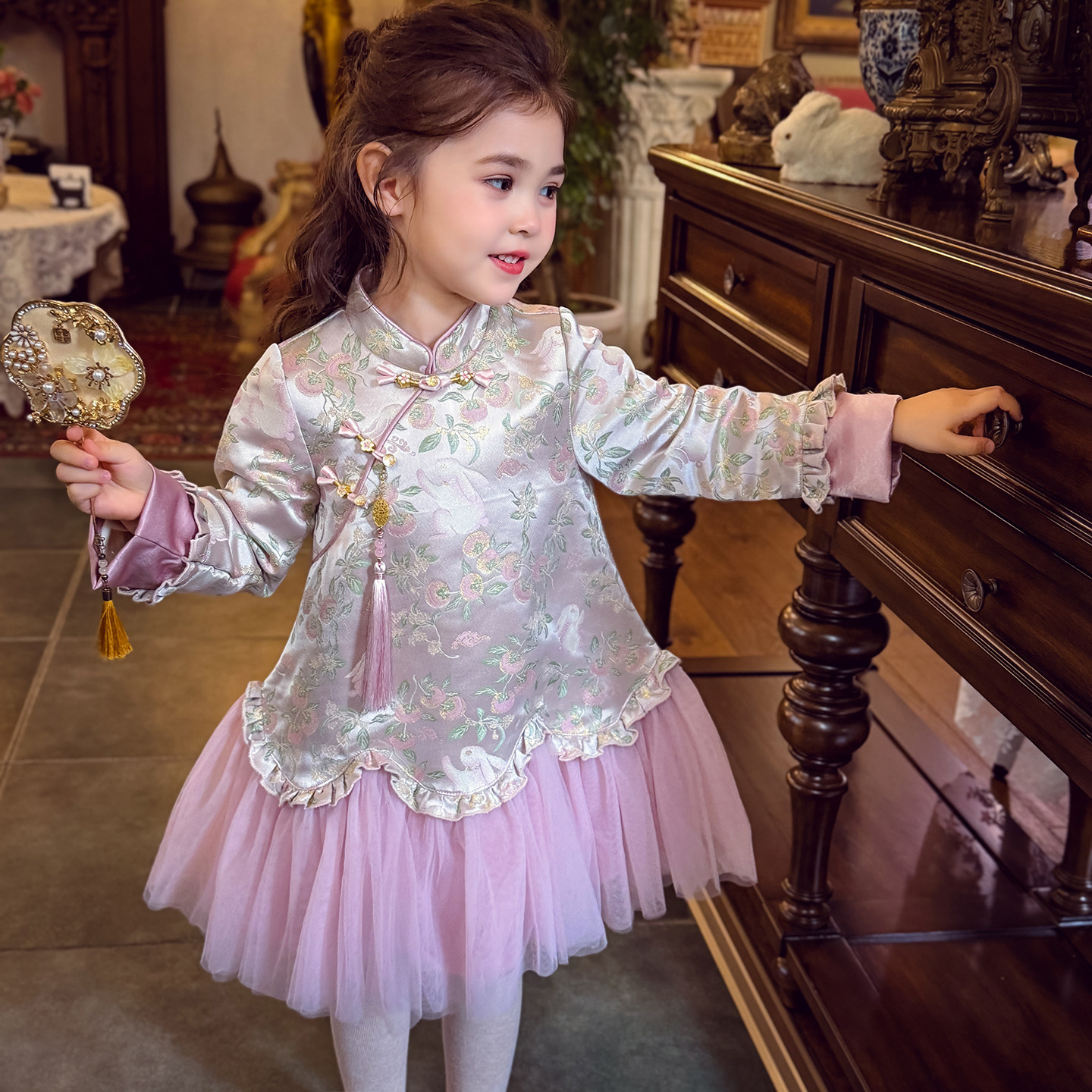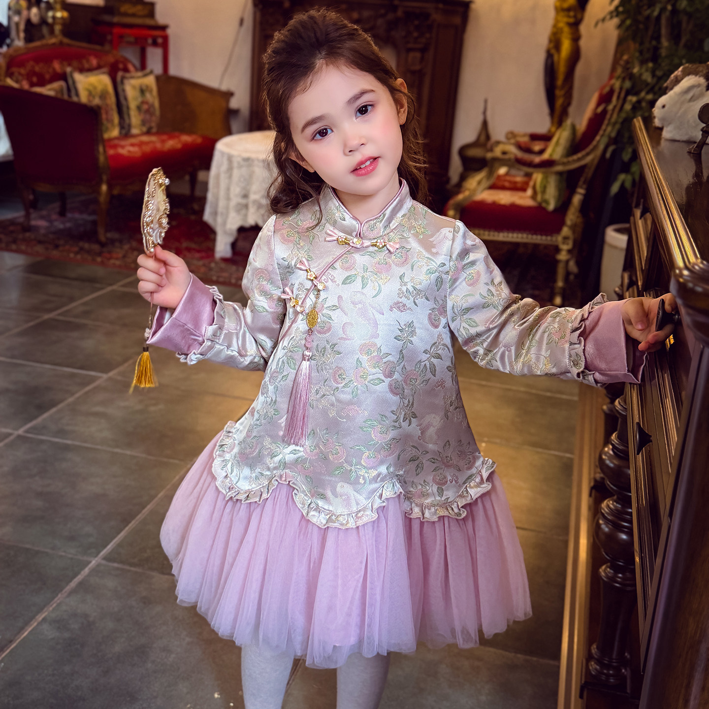 311线报网描述:新中式国风织锦提花网纱旗袍裙