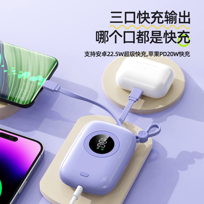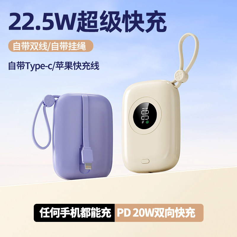 3C认证充电宝50000毫安超级快充自带线超大容量超薄小巧便携通用