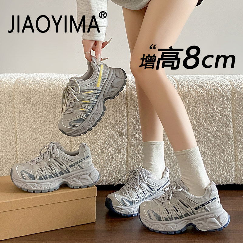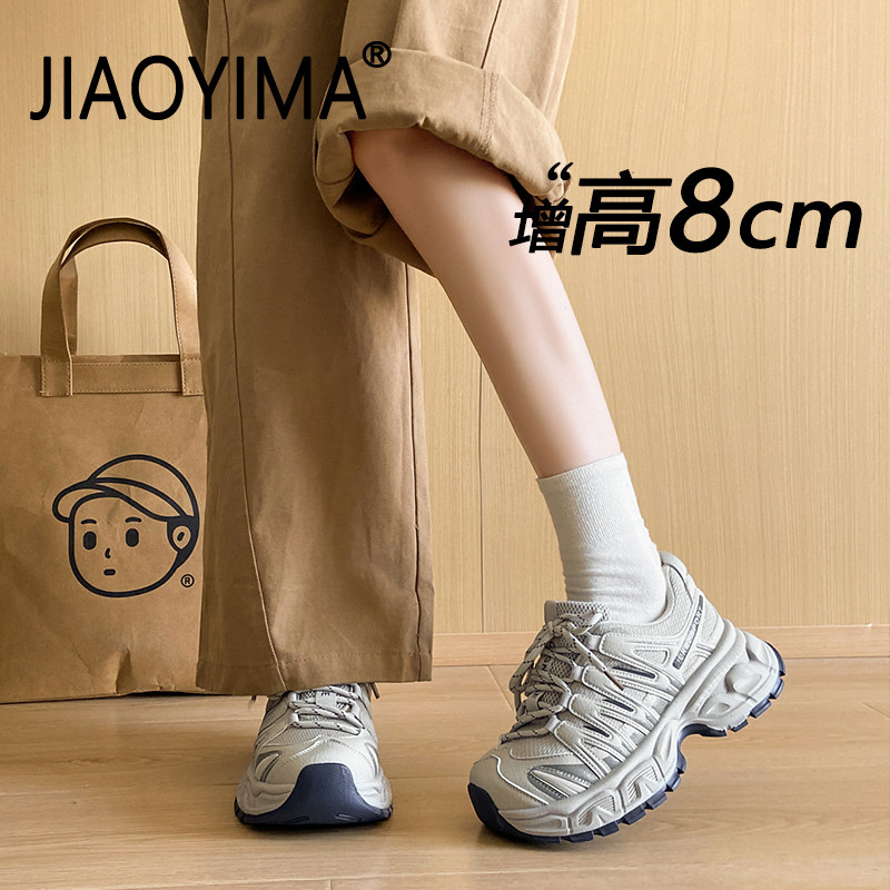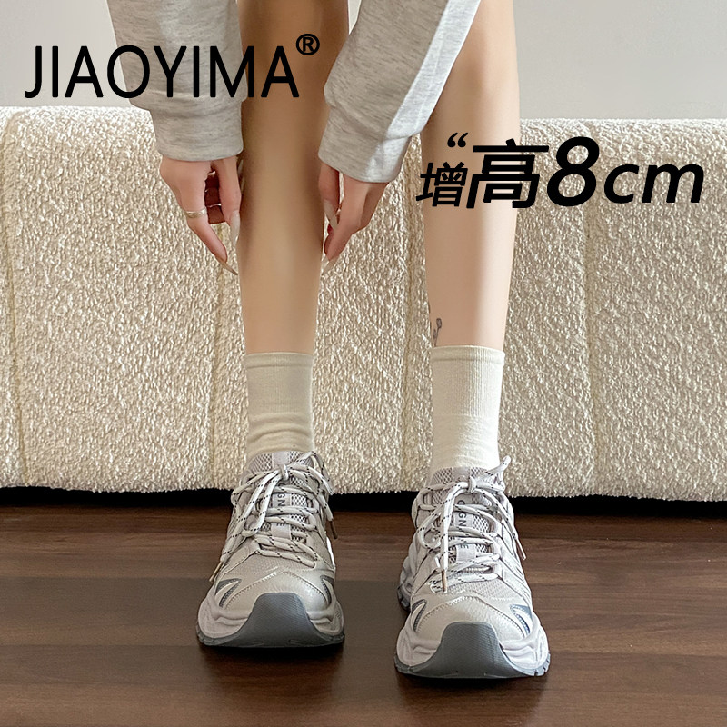 厚底运动鞋女款2026新款春季内增高轻便透气休闲鞋配阔腿裤老爹鞋