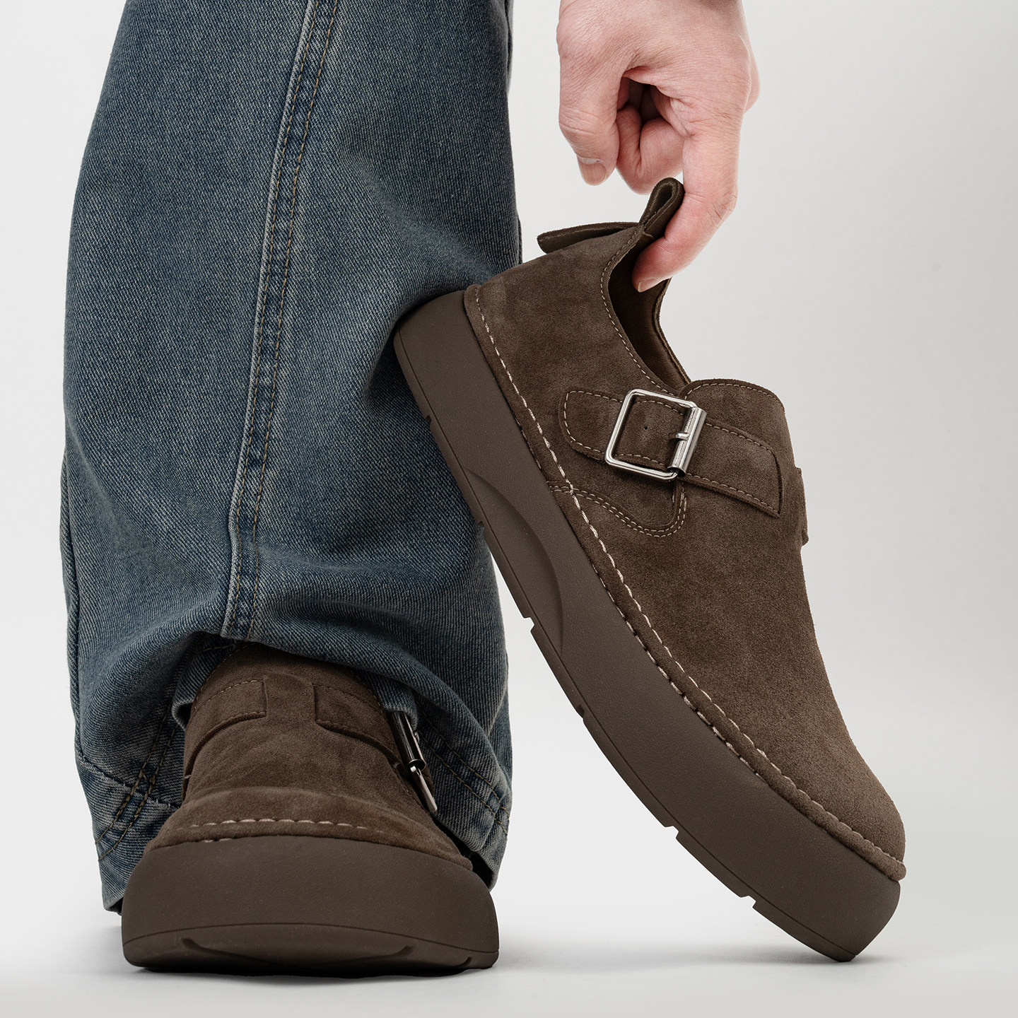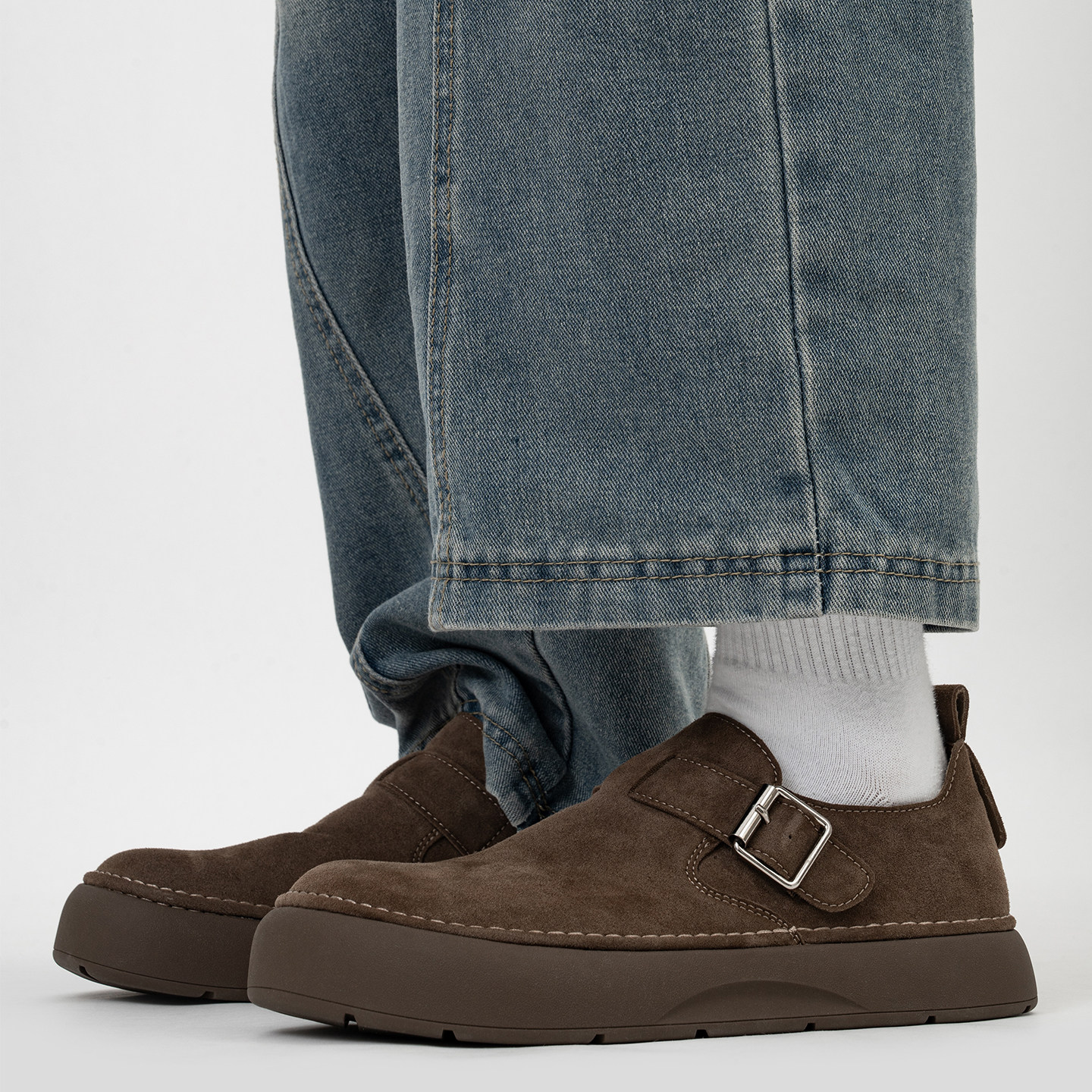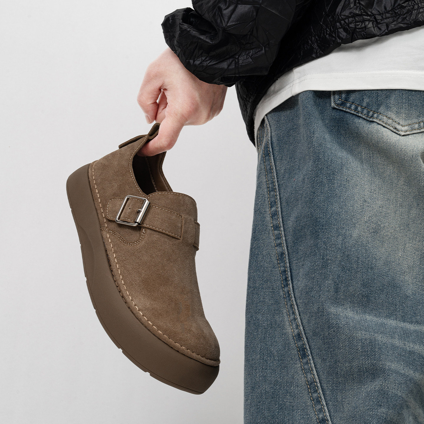 全包搭扣小土豆勃肯鞋男复古大头一脚蹬厚底乐福鞋休闲增高懒人鞋