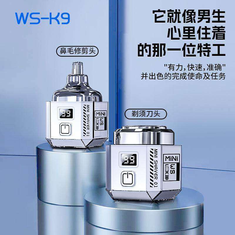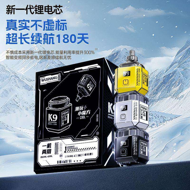 新款伍尚小魔方电动剃须刀迷你便携礼盒装送男友男士刮胡刀二合一