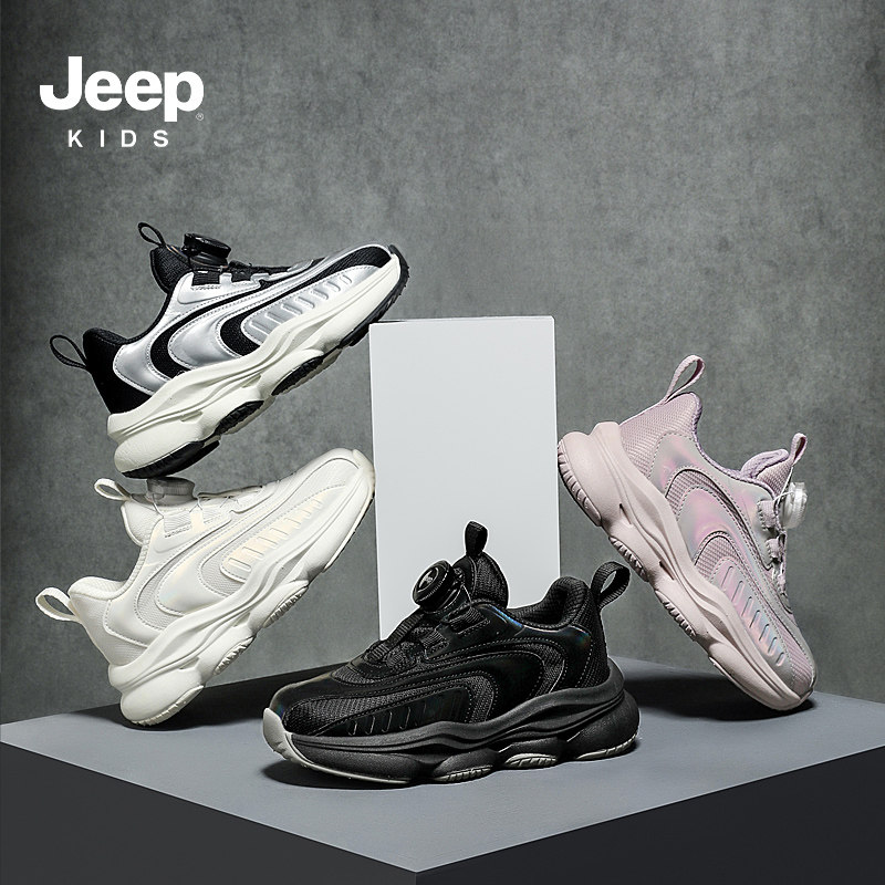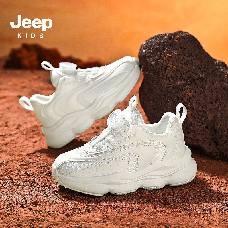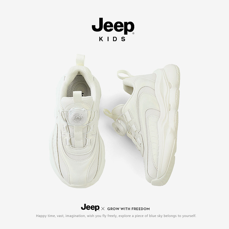 jeep儿童运动鞋春秋款2025新款中大童旋钮老爹童鞋小白鞋男童鞋子