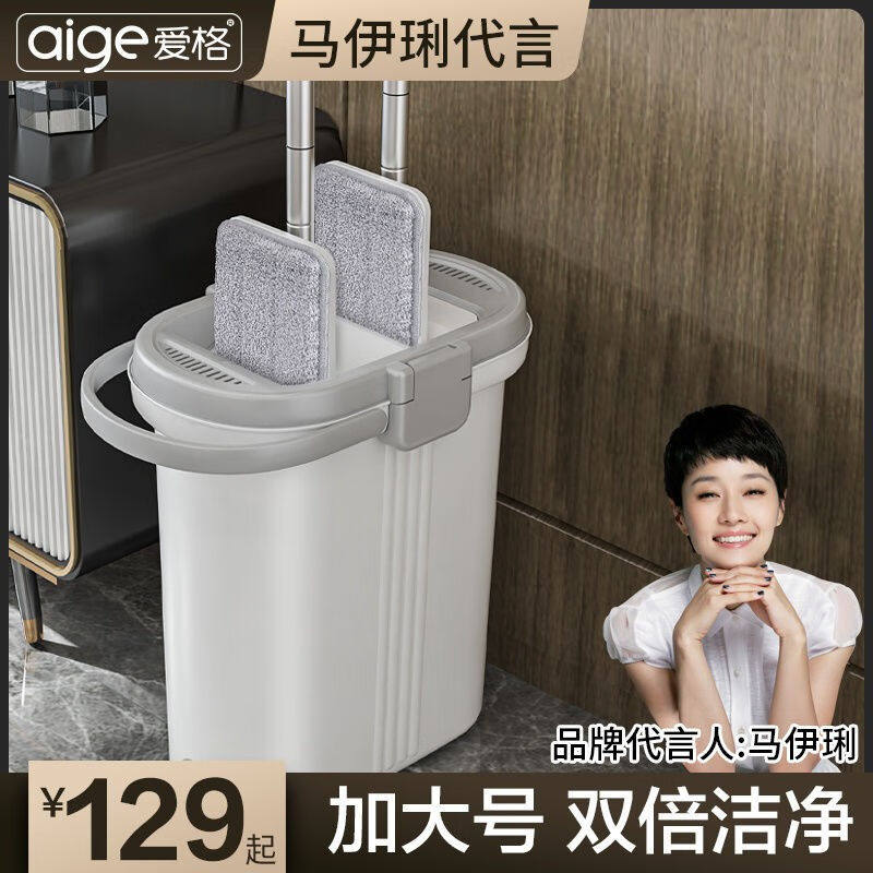 爱格终结者拖把免手洗拖把带桶平板家用一拖净干湿两用拖布懒人地