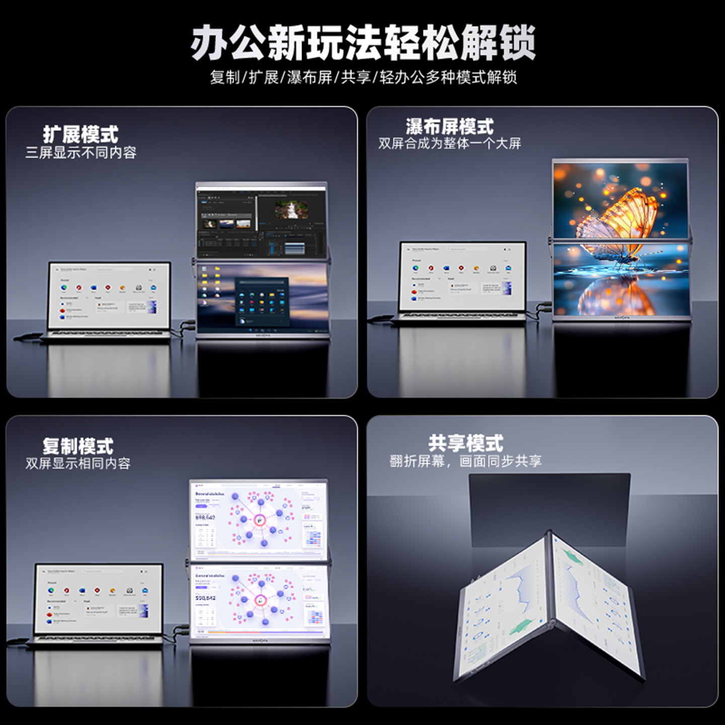 ARZOPA阿卓帕双屏显示器折叠便携电脑笔记本扩展副屏15.6英寸炒股