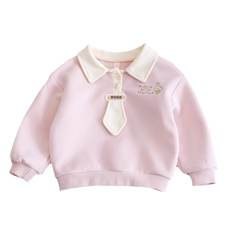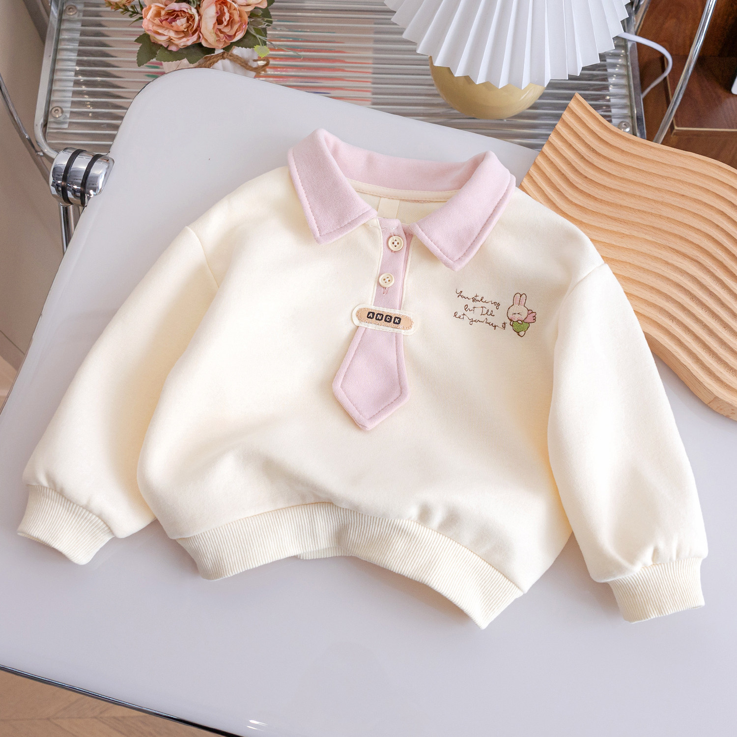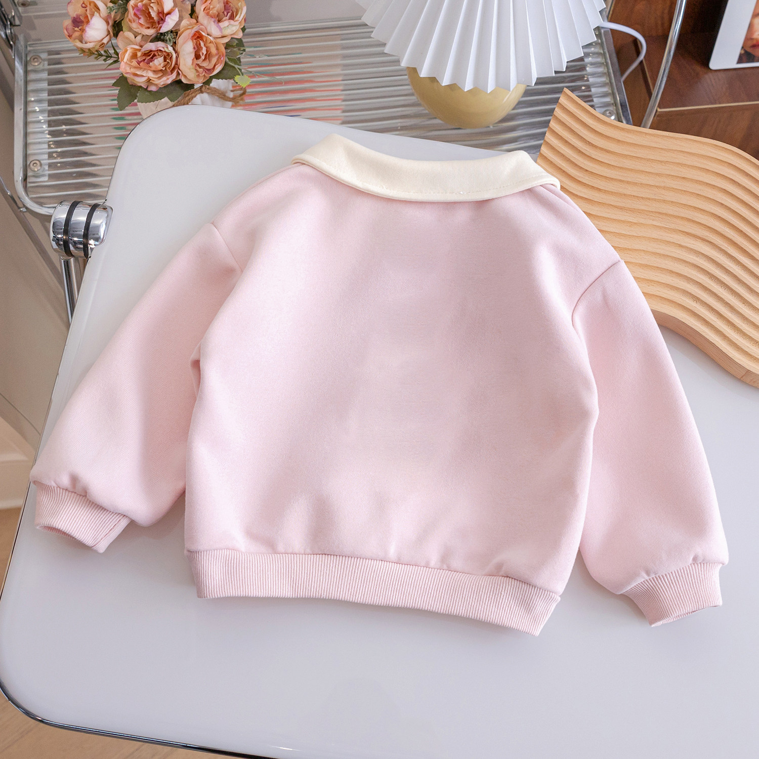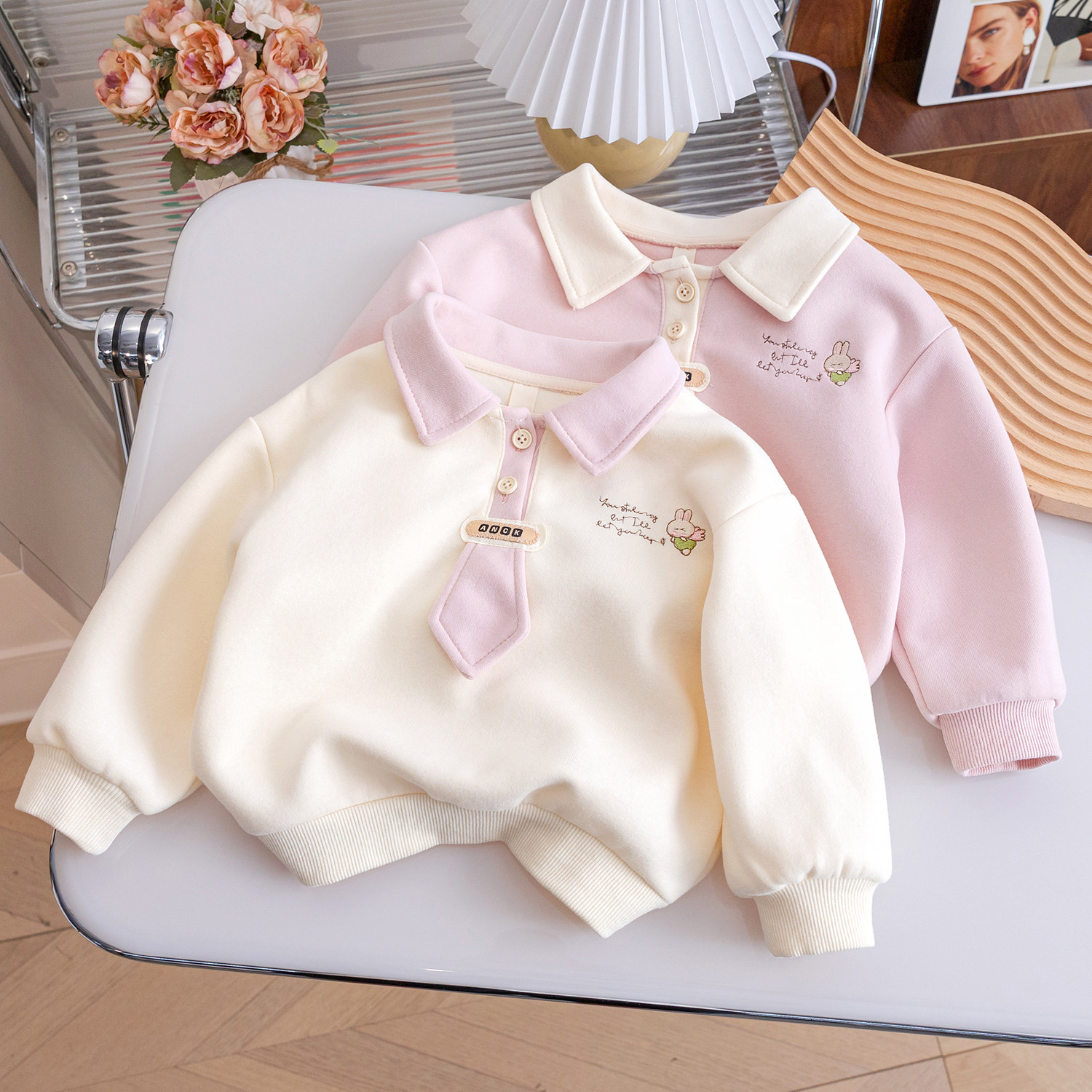 女童纯棉卫衣春秋新款洋气儿童时髦卡通上衣可爱翻领学院风POLO衫