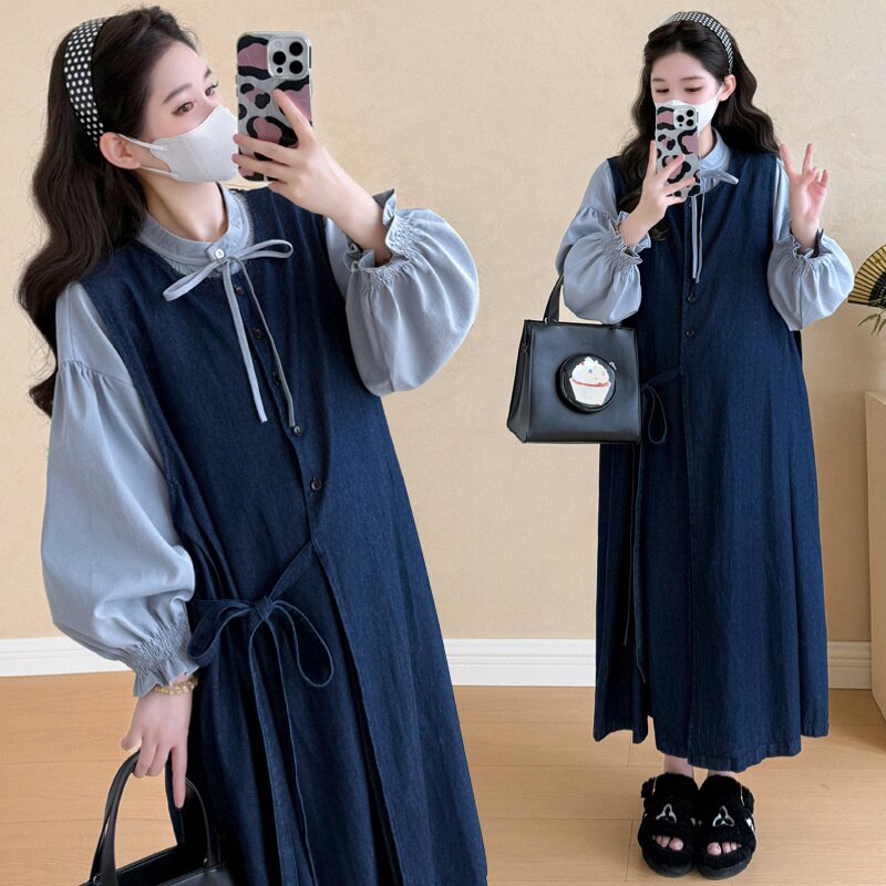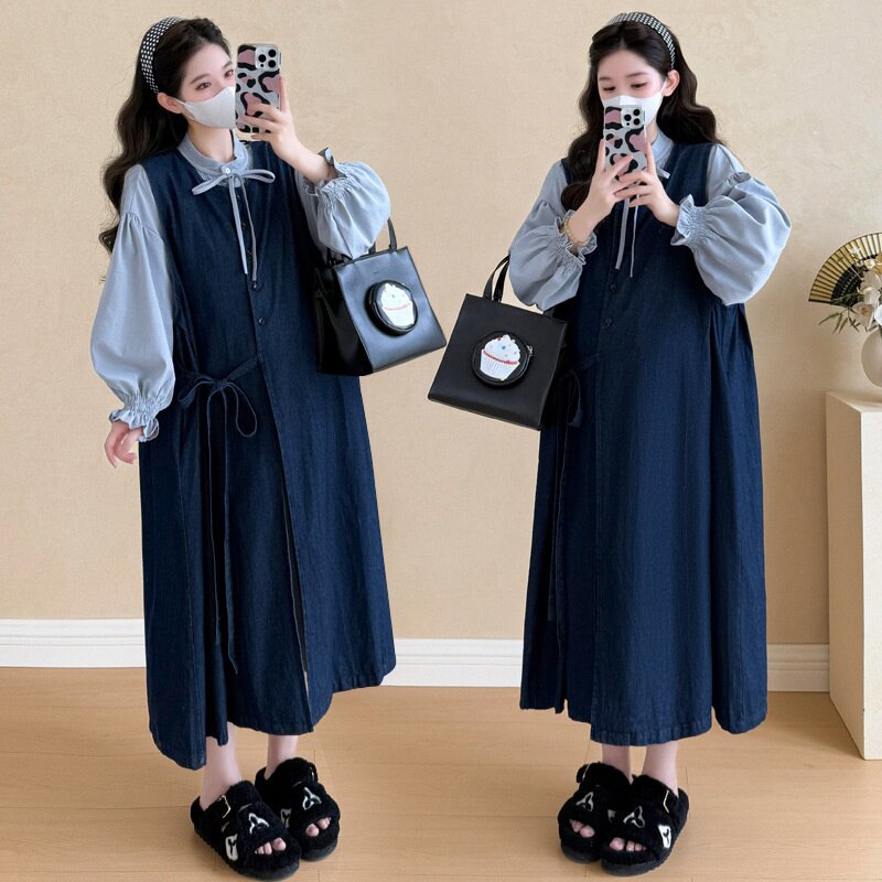 孕妇装2025秋季新款韩版时尚2件套孕妇连衣裙