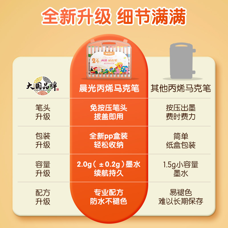 晨光文具丙烯马克笔小学生专用不透色可叠色儿童彩色绘画笔笔芯水彩笔软头可水洗幼儿园涂鸦防水36色美术DIY