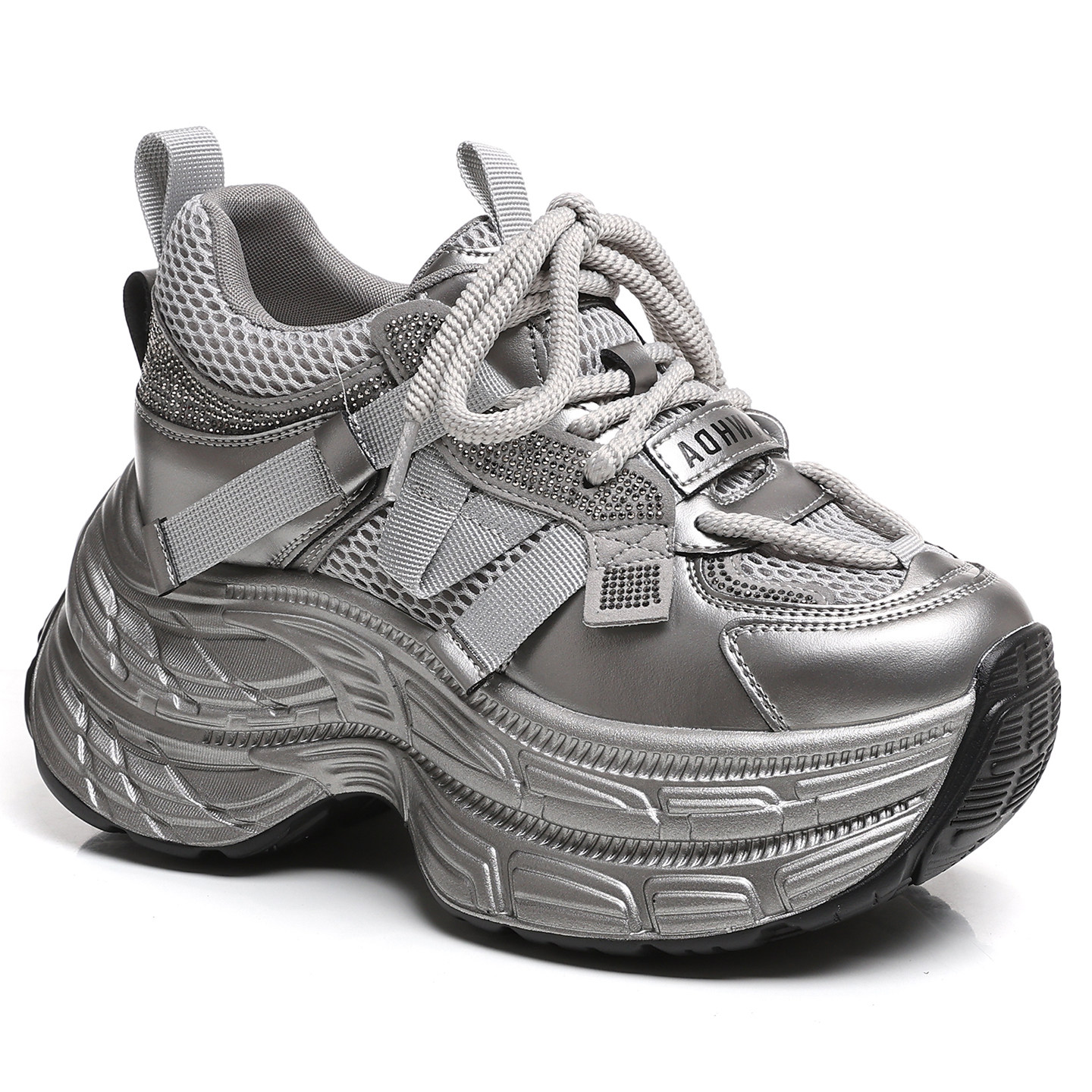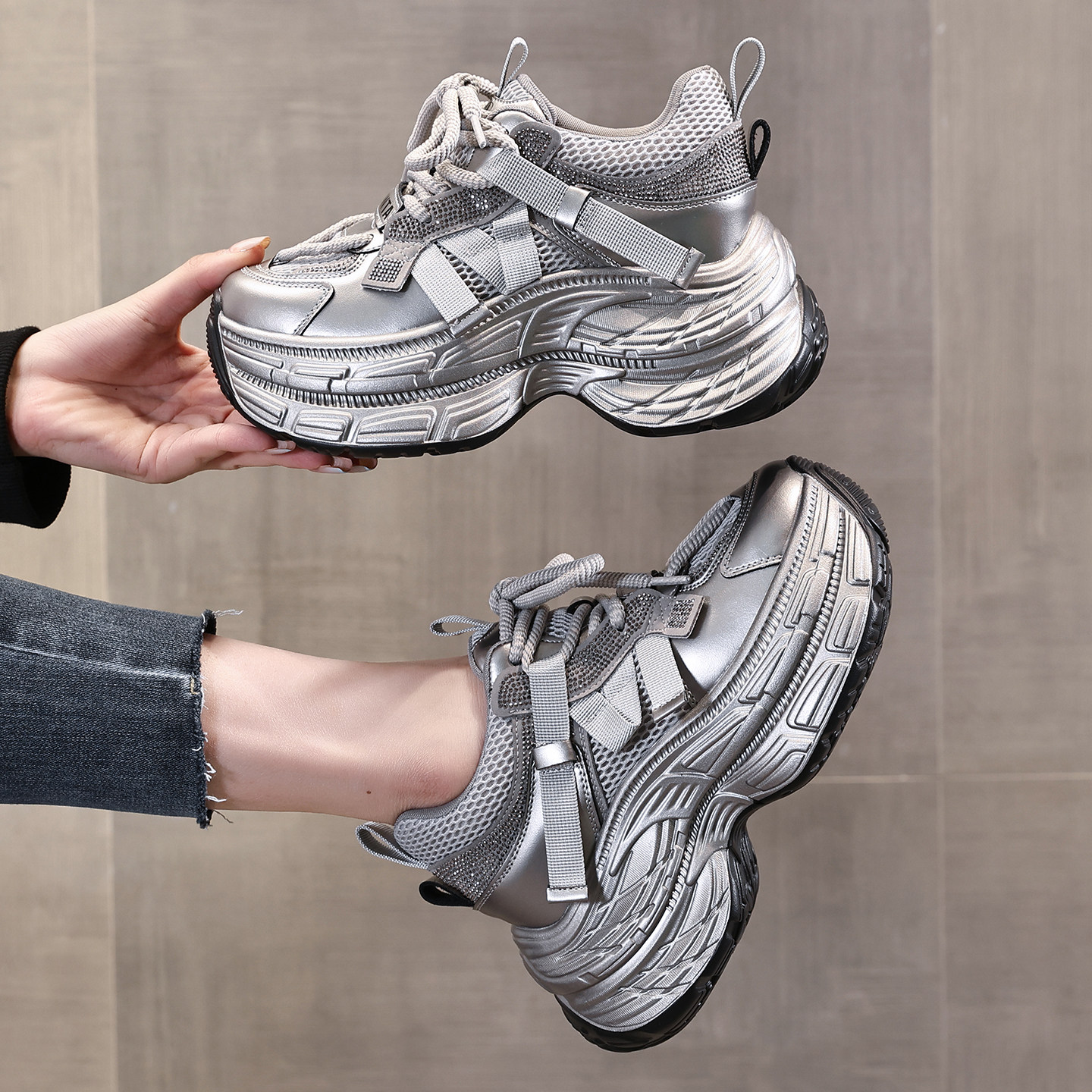 厚底内增高老爹鞋女款小个子2026年新款8cm银色休闲运动鞋显脚小