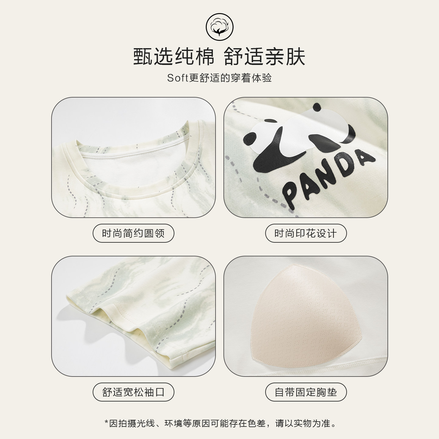 311线报网描述:100%新疆长绒棉 云感亲肤透气 自带一体胸垫