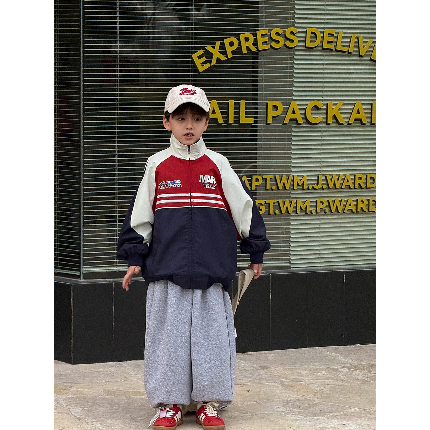 虾酱麻麻男童裤子春装2026新款中大童运动裤儿童直筒宽松休闲长裤