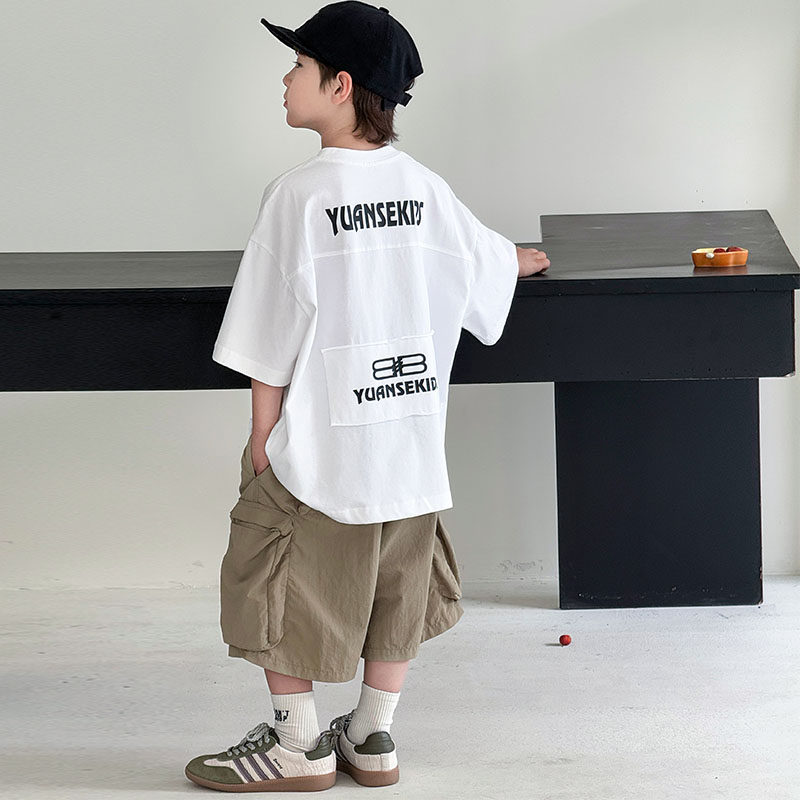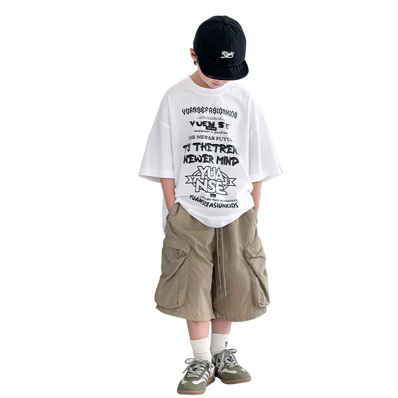 男童短袖t恤套装2026新款潮儿童夏季纯棉半袖T恤中大童两件套夏装