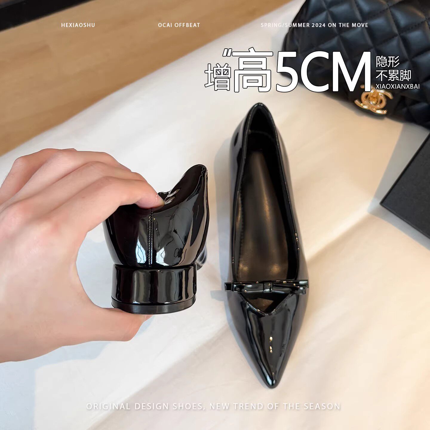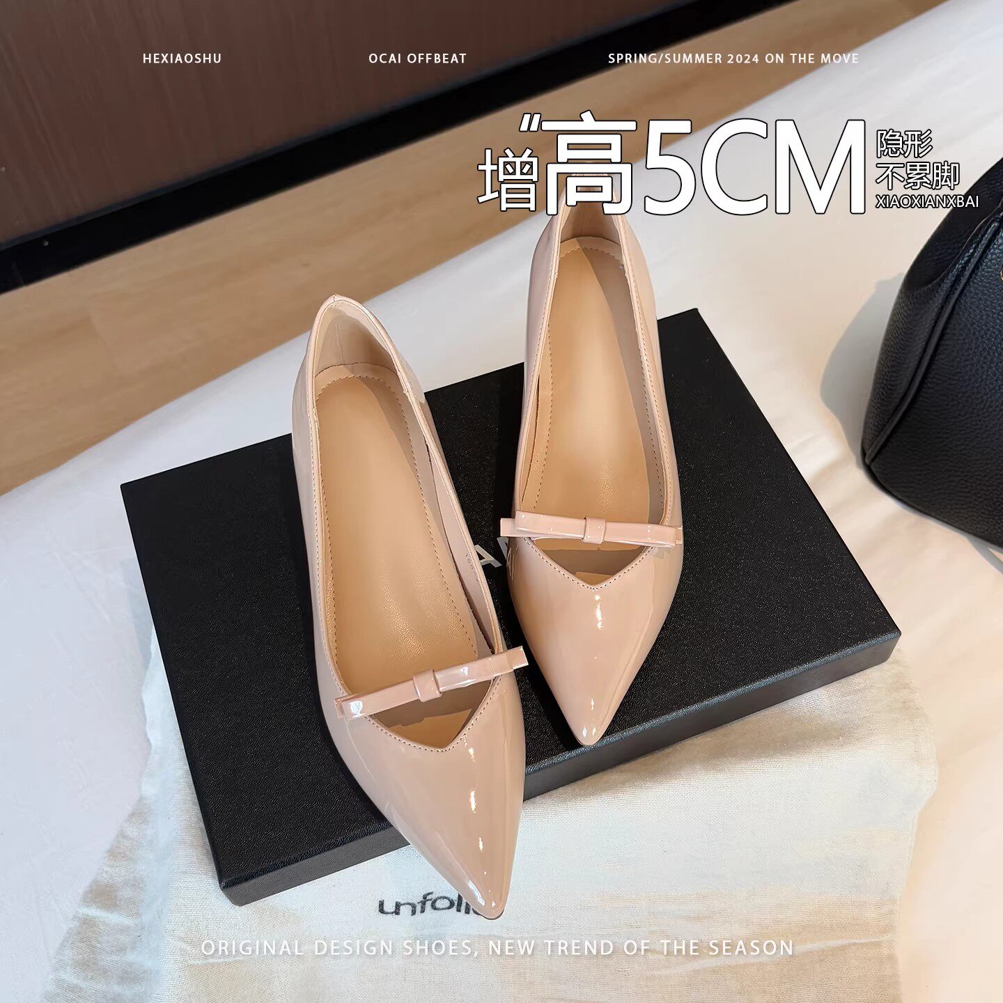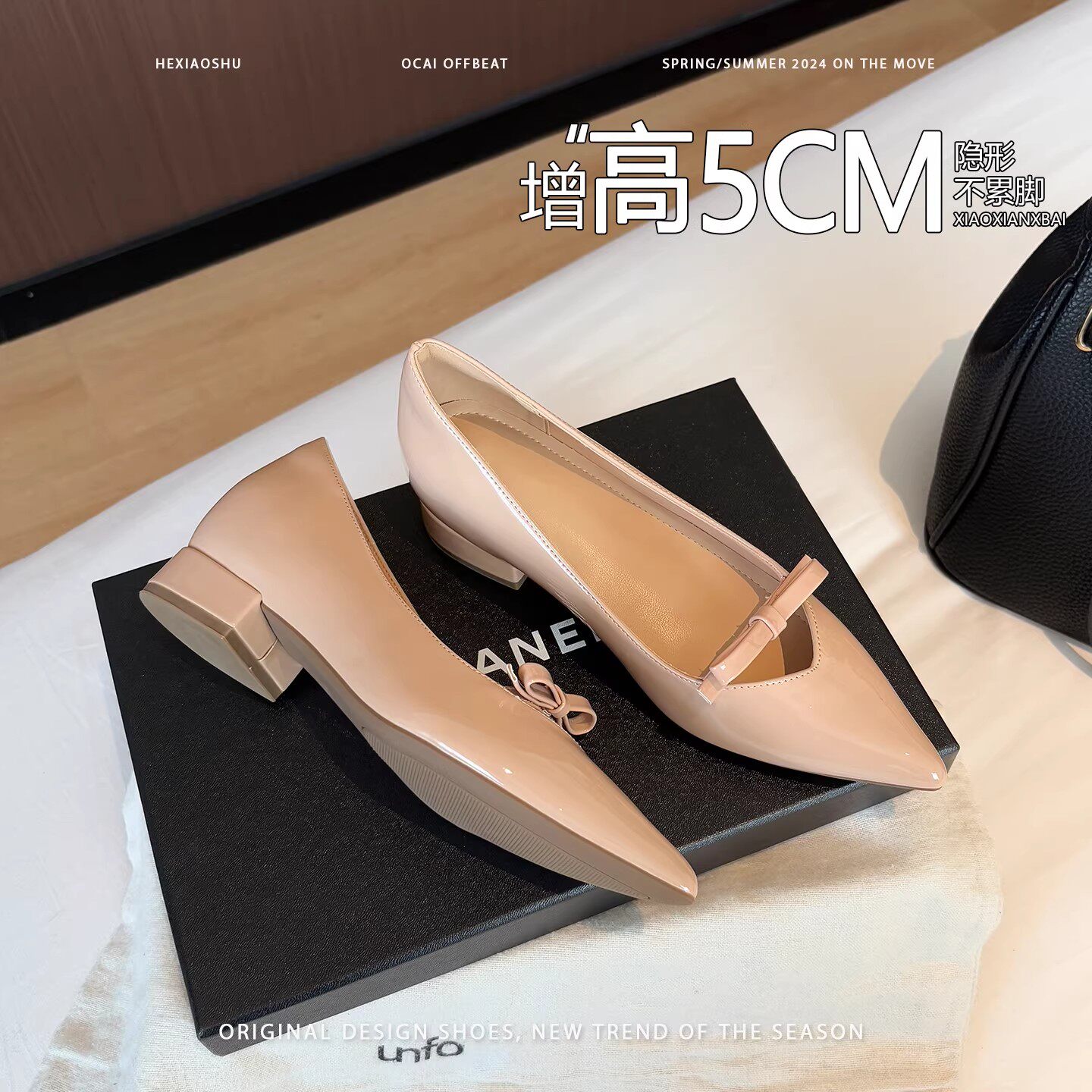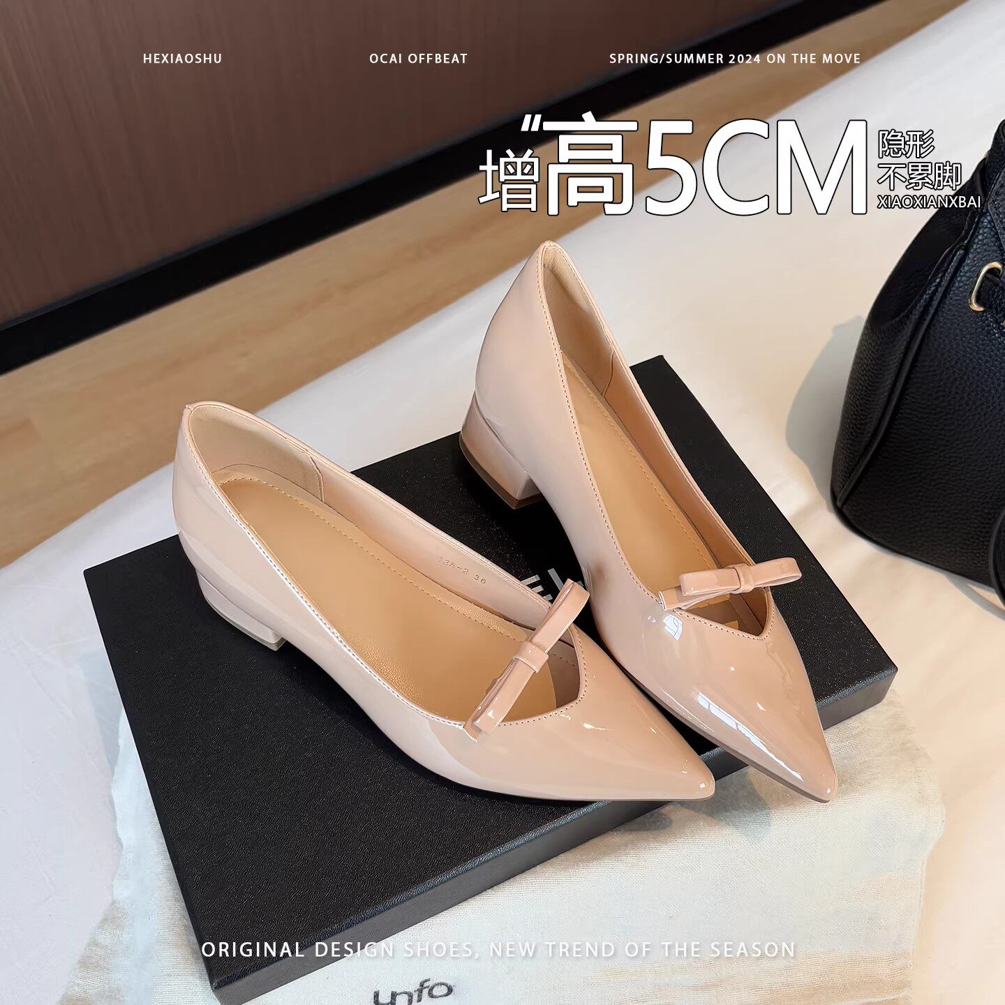 法式优雅风尖头蝴蝶结内增高露趾单鞋女2026新款百搭通勤玛丽珍鞋