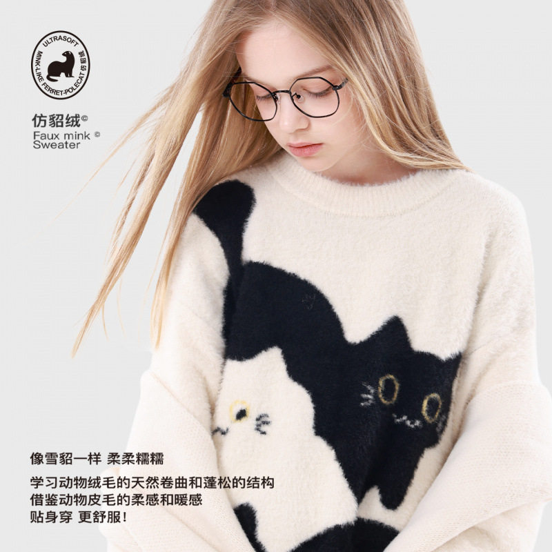 女童毛衣秋冬儿童仿貂绒毛线衣大童保暖外套青少年上衣女孩童装