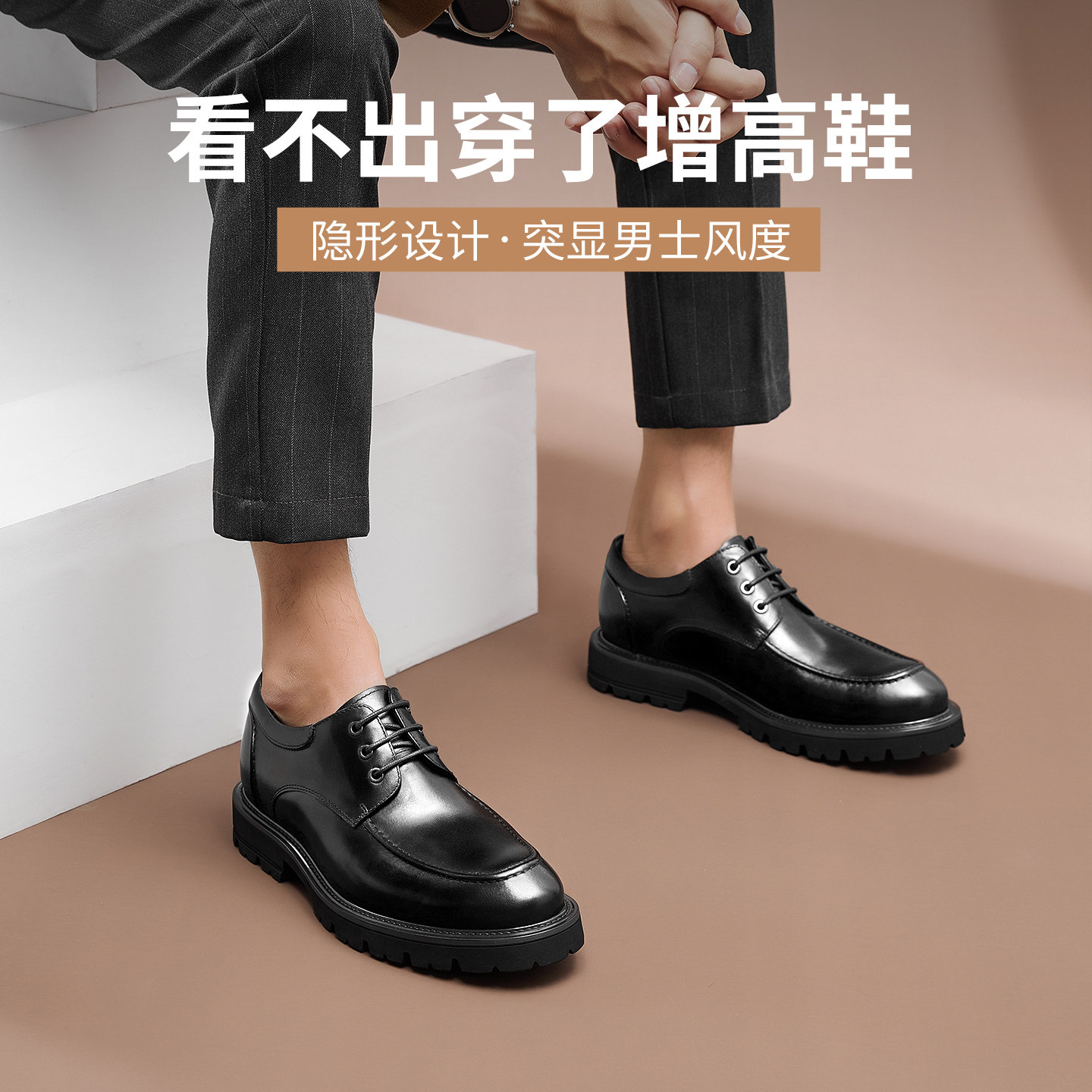 高哥增高皮鞋男春季新款头层牛皮男鞋舒适商务正装鞋轻便内增高鞋
