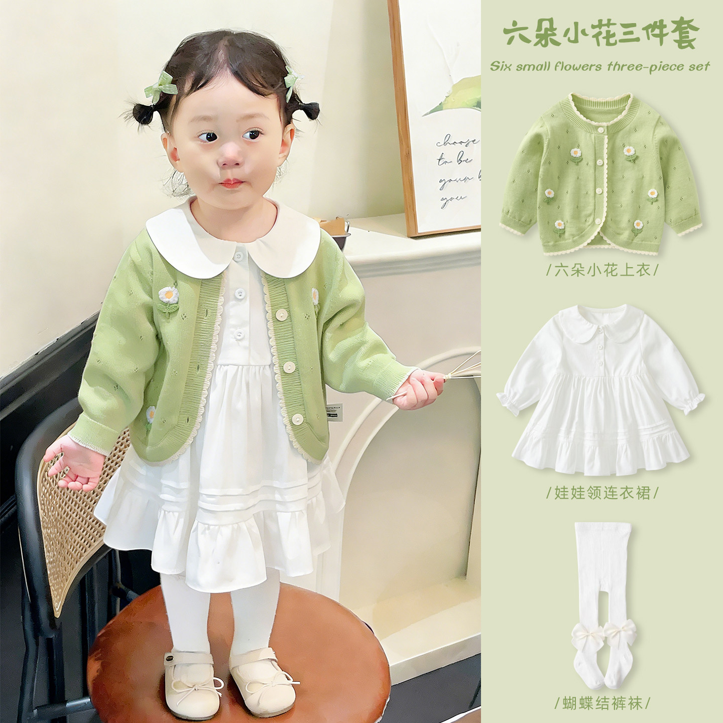 女童外套2026春装宝宝针织开衫洋气上衣婴儿春季薄款衣服外出套装