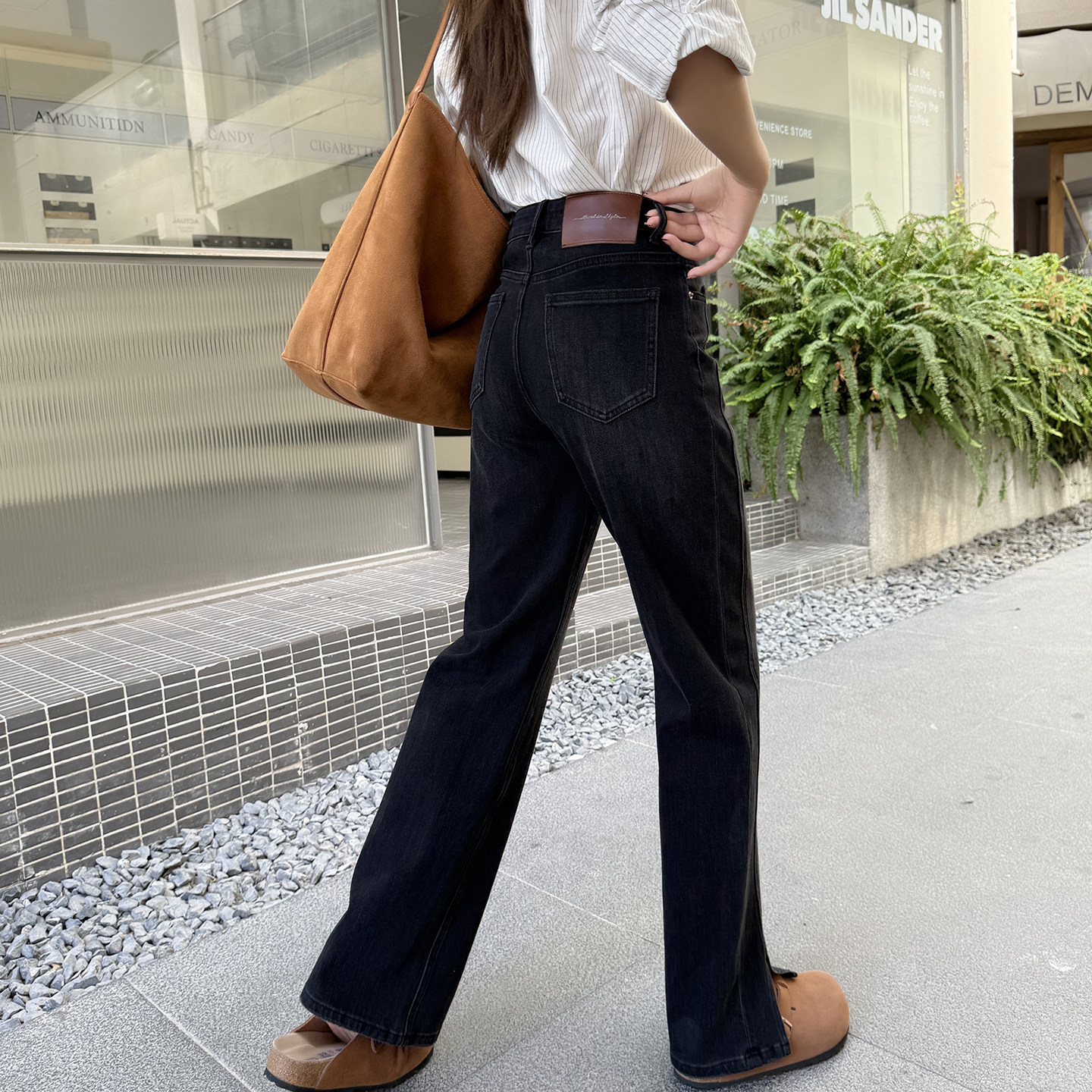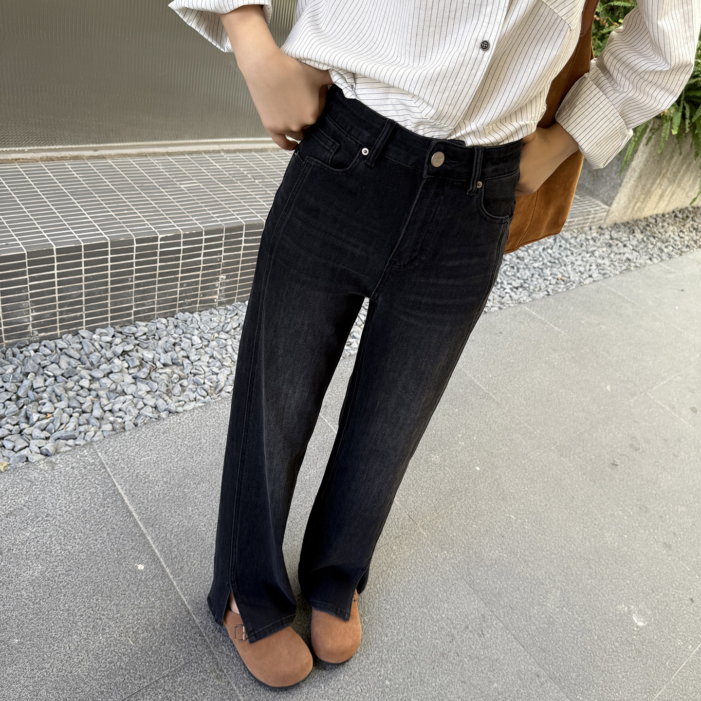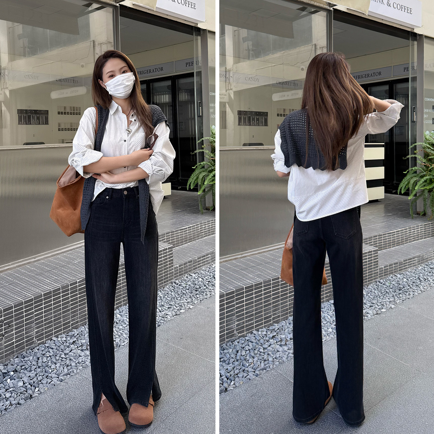 新年秒瘦神裤~黑色开叉牛仔裤女2026春季新款直筒宽松拖地阔腿裤