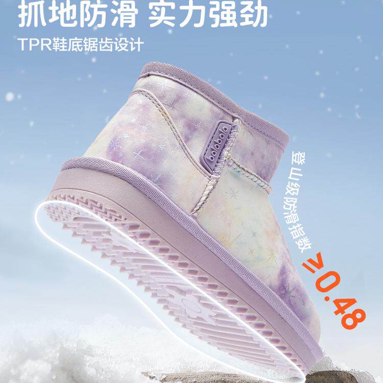 巴拉巴拉童鞋雪地靴短靴加绒加厚鞋棉靴新冬靴子防泼水保暖潮鞋子