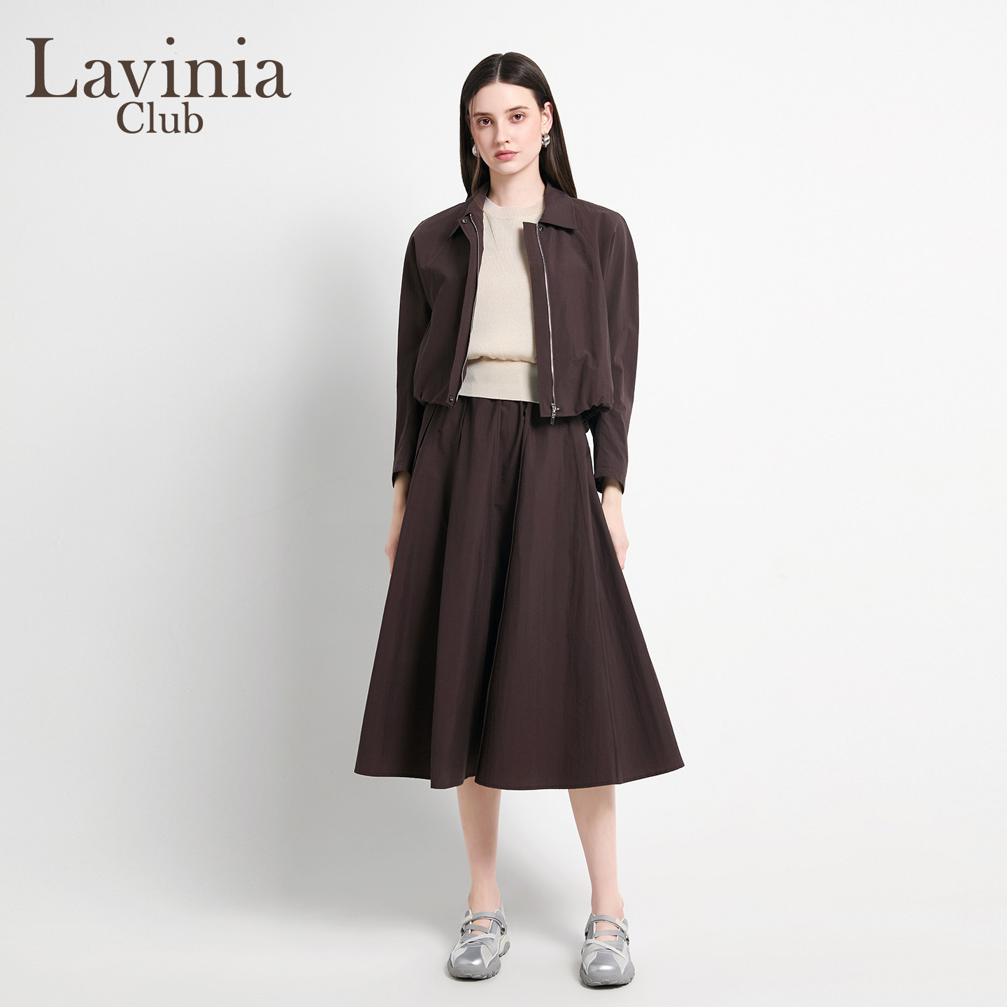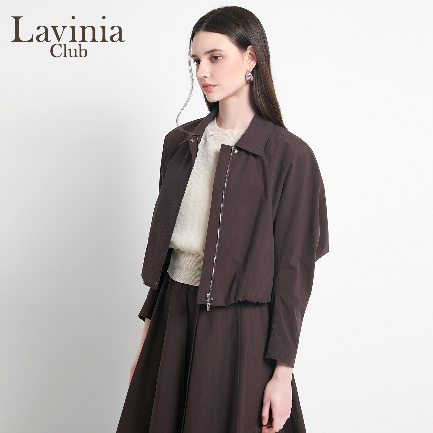 Lavinia2026早春新款女装知性通勤风翻领短款夹克风衣外套J61W51