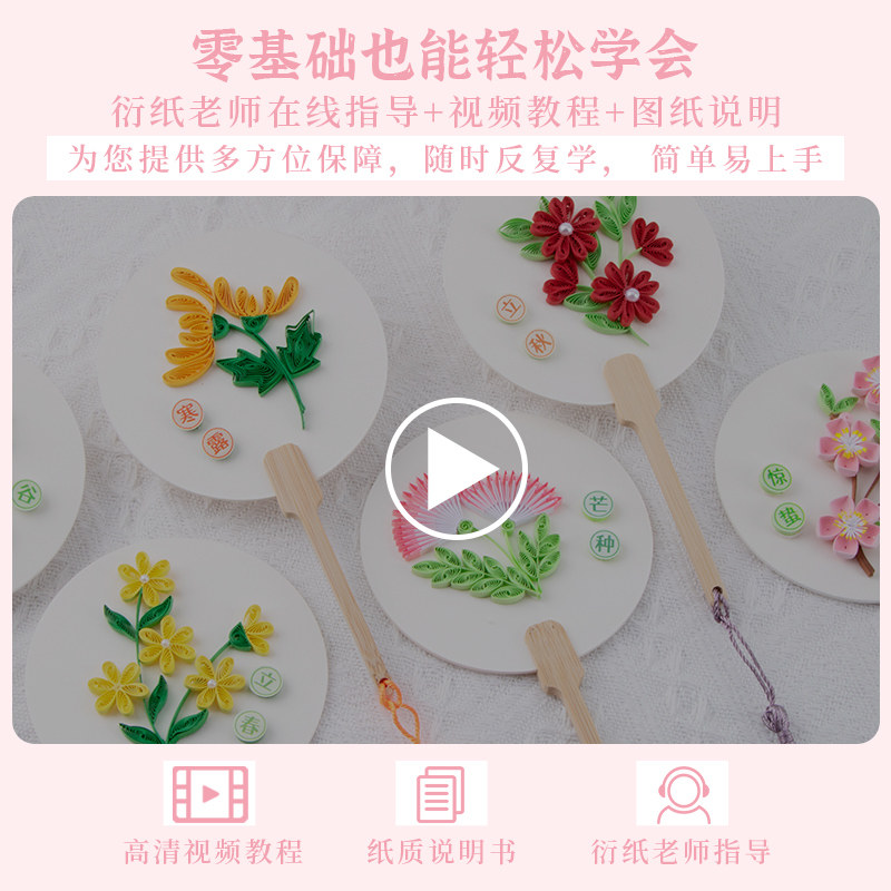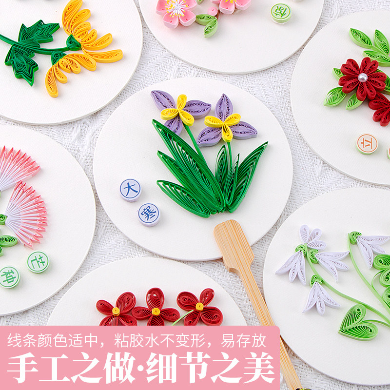 赛卓春夏秋冬24节气衍纸小团扇手工材料包工具套装小学生初学者手工diy社团活动非遗传统节日衍纸成品