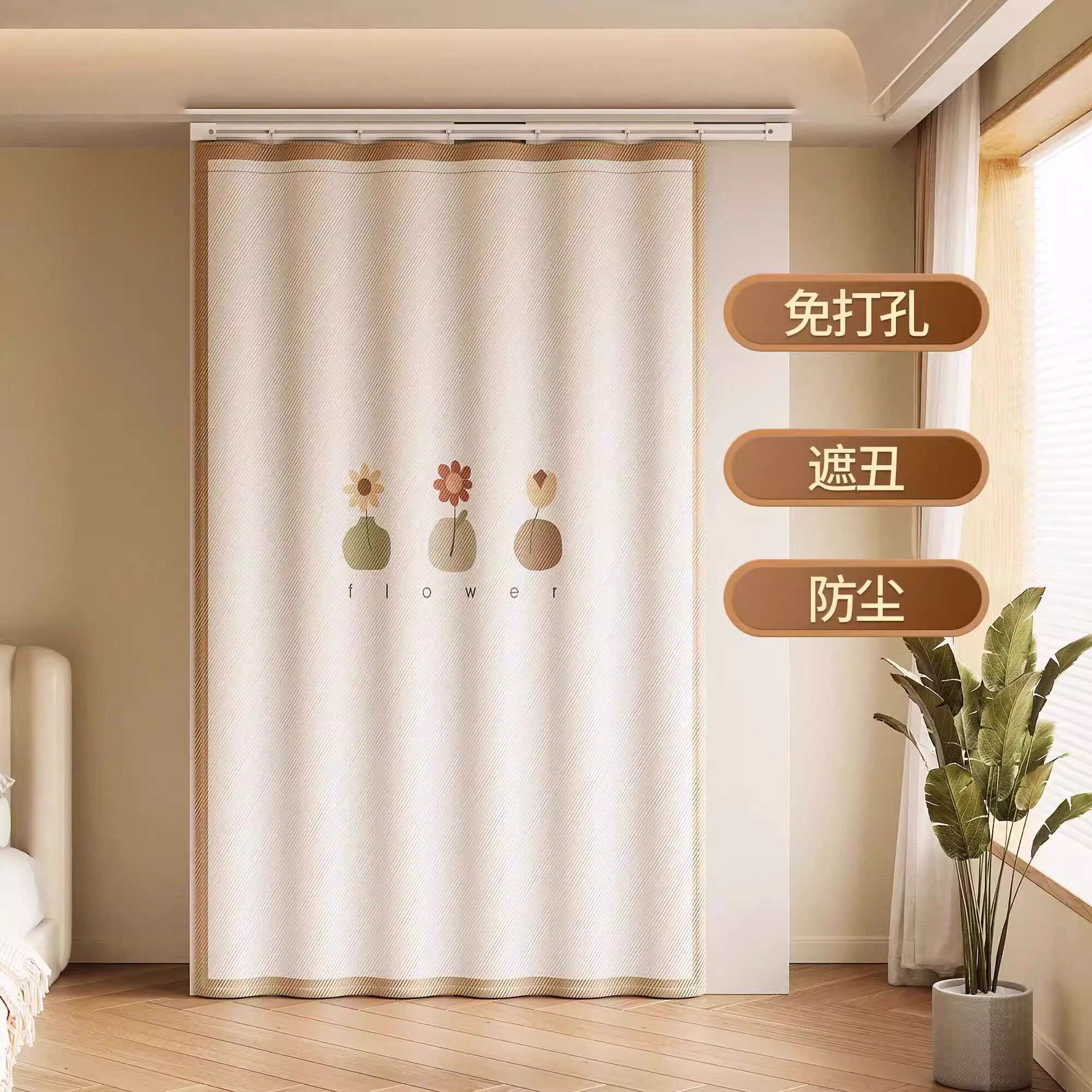 遮挡帘衣柜鞋柜无门防尘免打孔衣帽门帘滑轨杂物柜子衣柜定制帘布