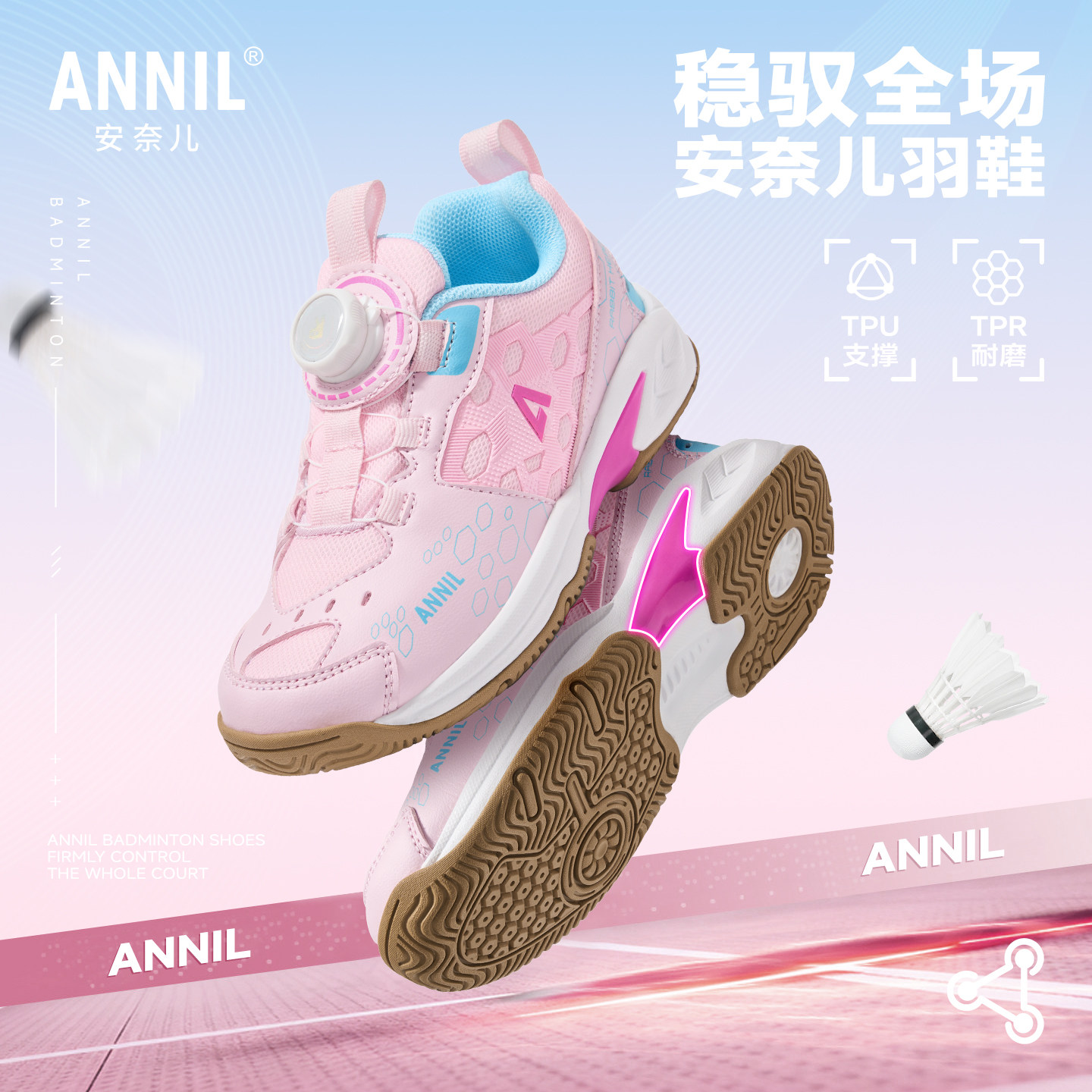 安奈儿女童鞋子2026新款春秋季儿童专业羽毛球鞋防滑小学生训练鞋